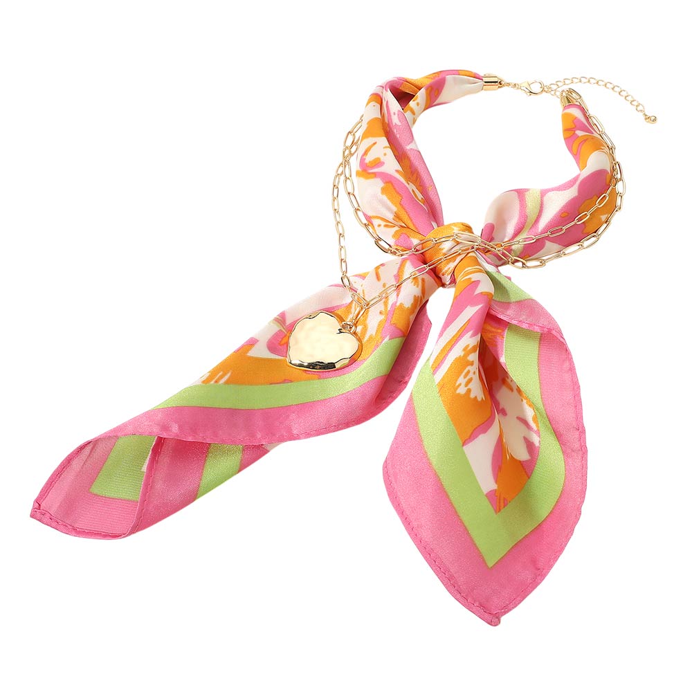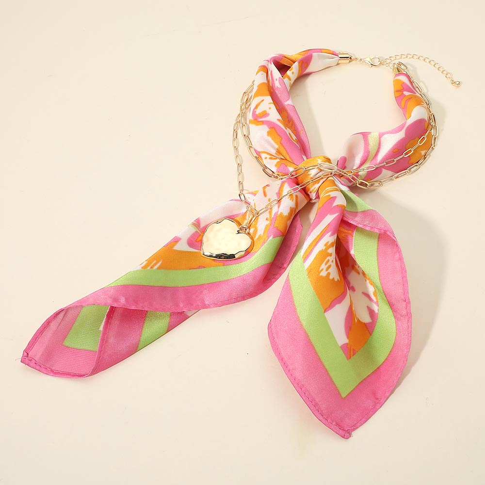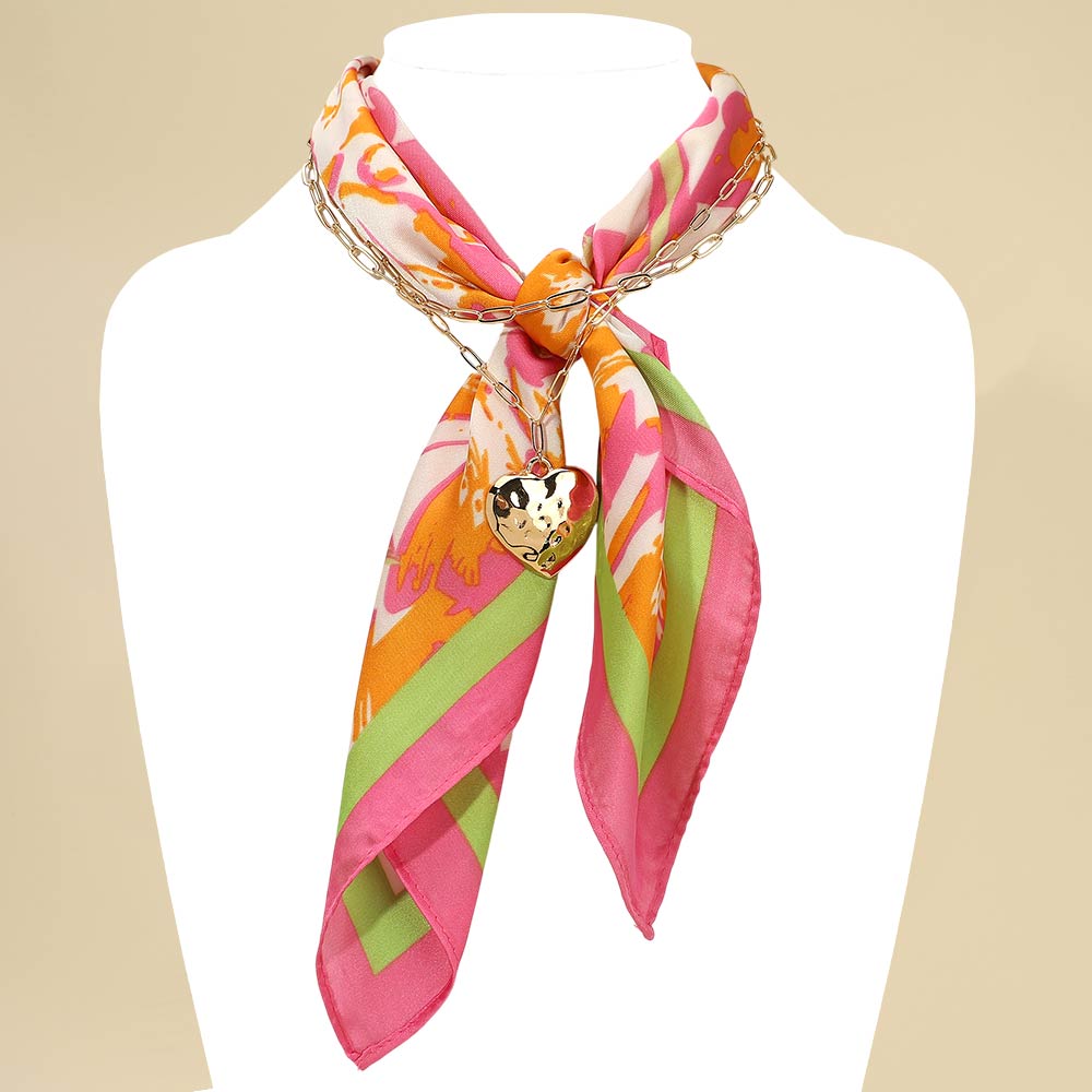 • This chain detail scarf necklace blends a soft draped scarf with a linked accent and heart charm for a refined statement look. Designed to wear as a necklace, it adds effortless polish to casual and dressy outfits, making it a versatile accessory for everyday styling and elevated fashion collections.