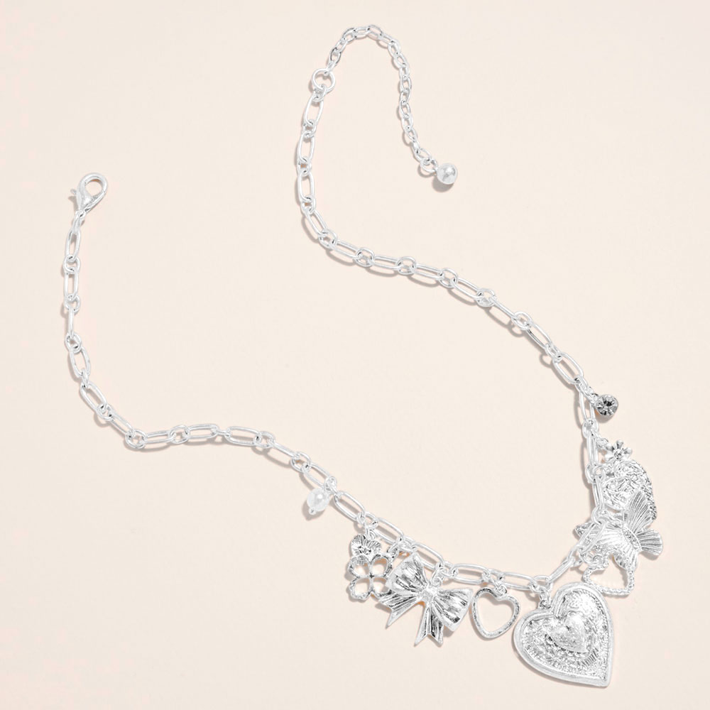 Heart Butterfly Bow Pearl Flower Charm Station Necklace Heart Butterfly Bow Pearl Flower Charm Station Necklace