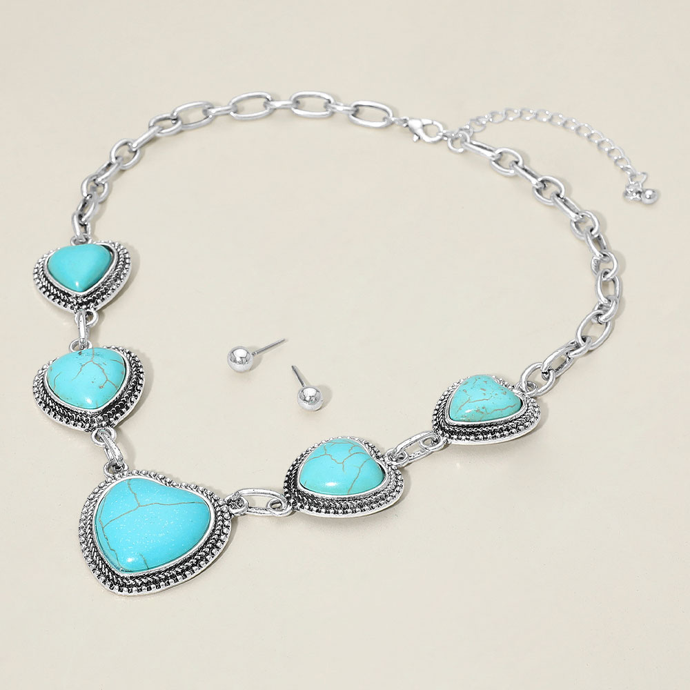 Details • Necklace Size : 17" L + 3" L • Decor Size : 1.25" L • Earring Size : 0.5" L • Add romantic charm to your style with this heart link necklace and stud earring set featuring a coordinated chain design with sculpted heart stations and matching studs. Designed to wear together or separately, it brings statement appeal to everyday outfits or dress looks while offering a versatile, gift-ready accessory set. • Lead and Nickel Compliant