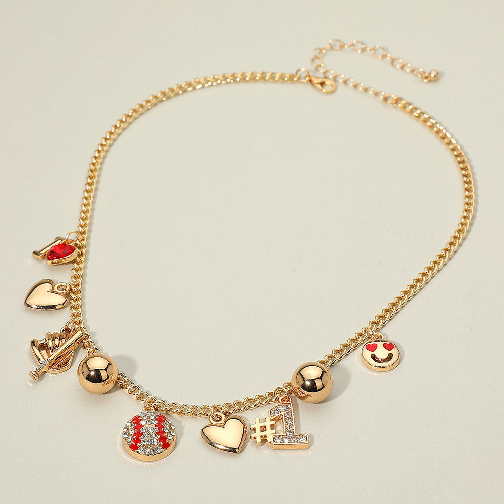 Heart Smile Number One Baseball Charm Station Necklace Heart Smile Number One Baseball Charm Station Necklace Heart Smile Number One Baseball Charm Station Necklace