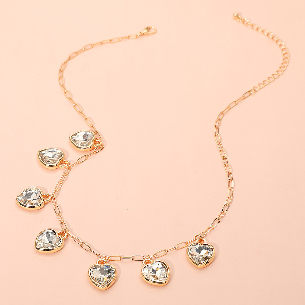 Details • Necklace Size : 16.5" + 3" L • Decor Size : 0.8" L • Elegant chain necklace featuring dangling faceted heart charms that add sparkle and movement to any look. Lightweight, adjustable, and perfect for layering or wearing alone. A chic accessory for gifting or daily wear. • Lead and Nickel Compliant