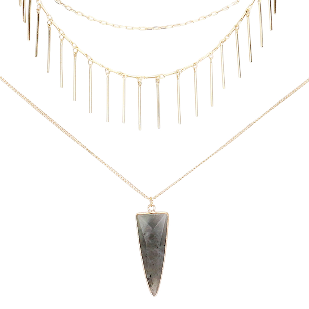 Layered Natural Stone Pendant Necklace