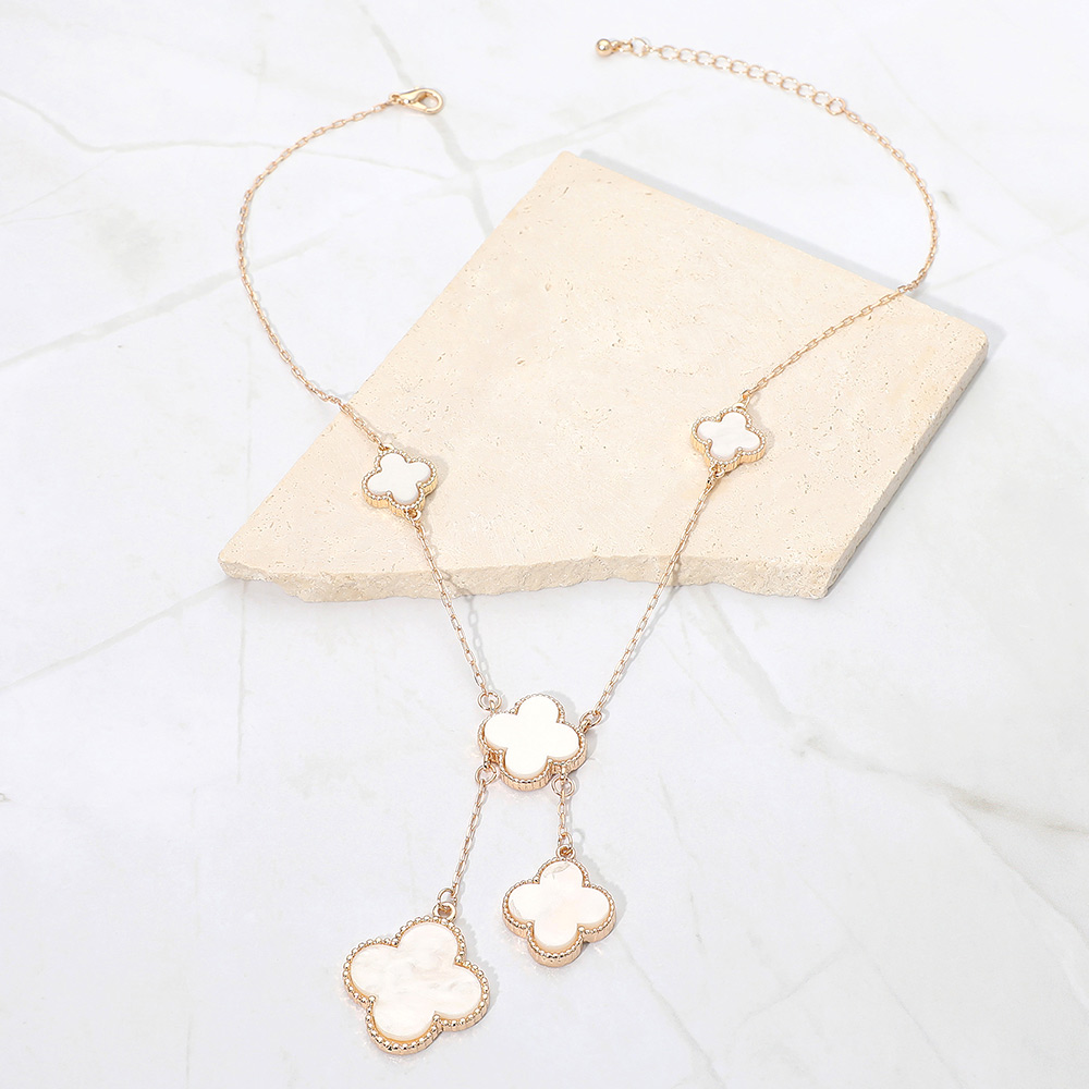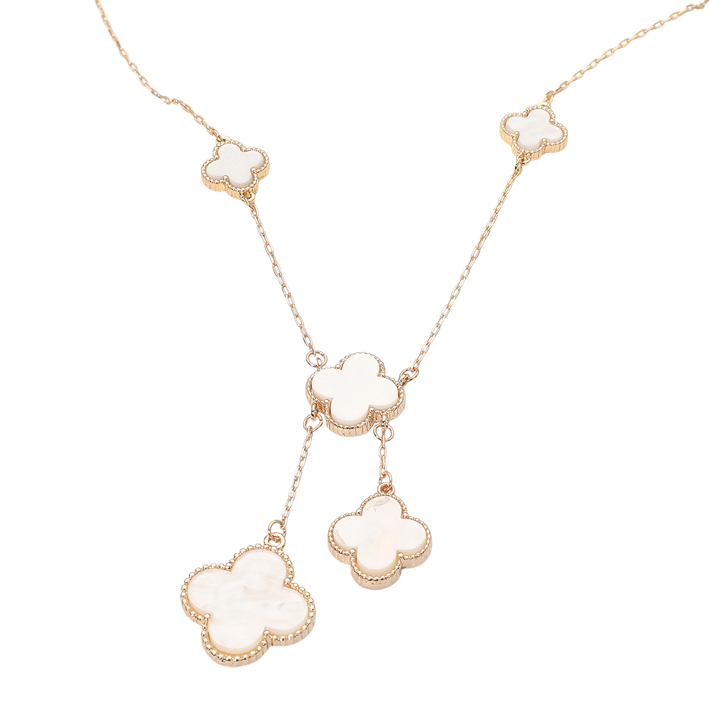 • Stylish necklace featuring multiple quatrefoil pendants in a cascading layered design. The elegant drop detail adds movement and sophistication, making it perfect for both casual and formal wear, offering a timeless charm that enhances any outfit effortlessly.