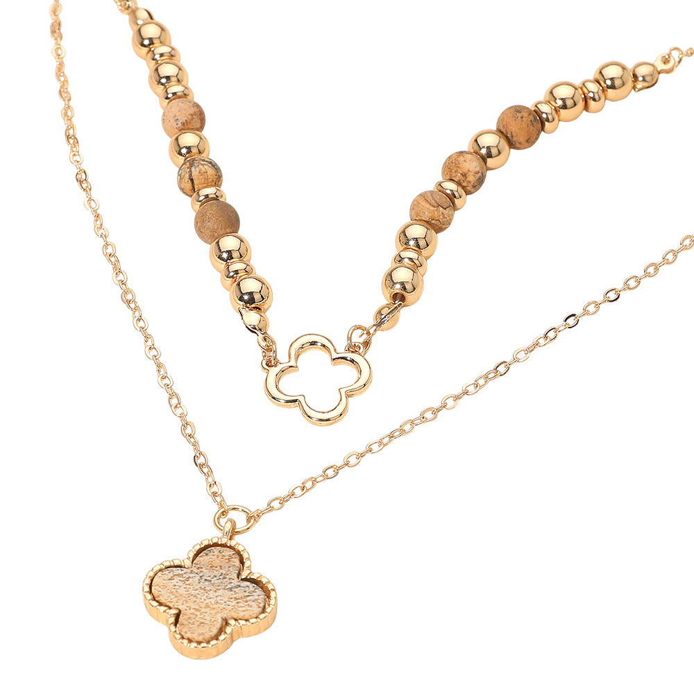 • Elevate your style with a layered quatrefoil pendant necklace featuring adjustable chains and delicate bead details for a refined, modern look. Ideal for wearing solo or stacked, this versatile accessory complements casual outfits, special occasions, and gift giving.