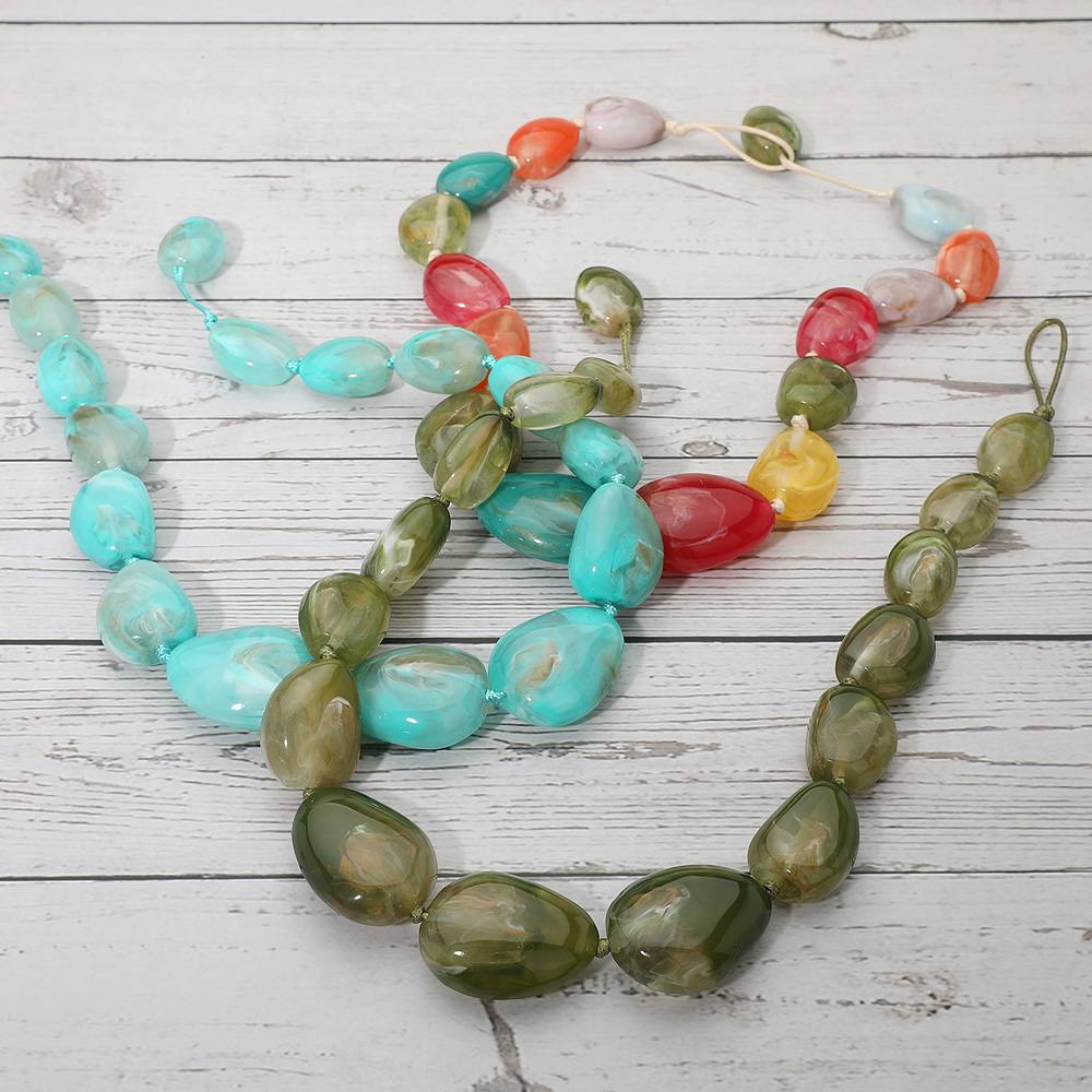 • Bold chunky beaded necklace featuring irregular resin beads in natural tones. A versatile statement piece perfect for elevating casual looks or adding flair to evening outfits.