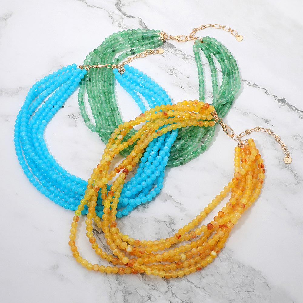 • Make a bold impression with this multi-strand beaded statement necklace designed to enhance any outfit. Its layered construction adds dimension and elegance, offering a polished look that transitions seamlessly from everyday wear to standout, special-occasion styling.