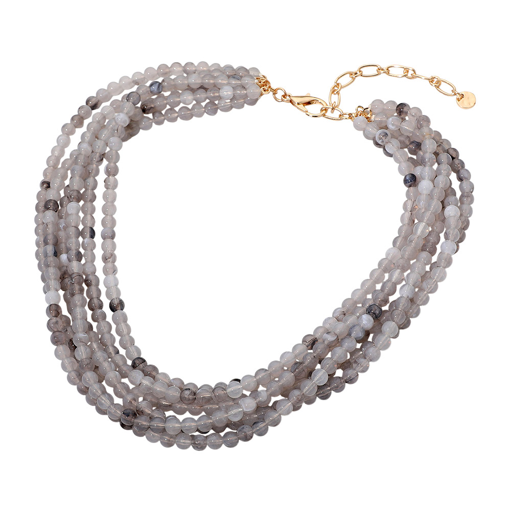 Marbled Resin Ball Beaded Multi Layered Statement Necklace