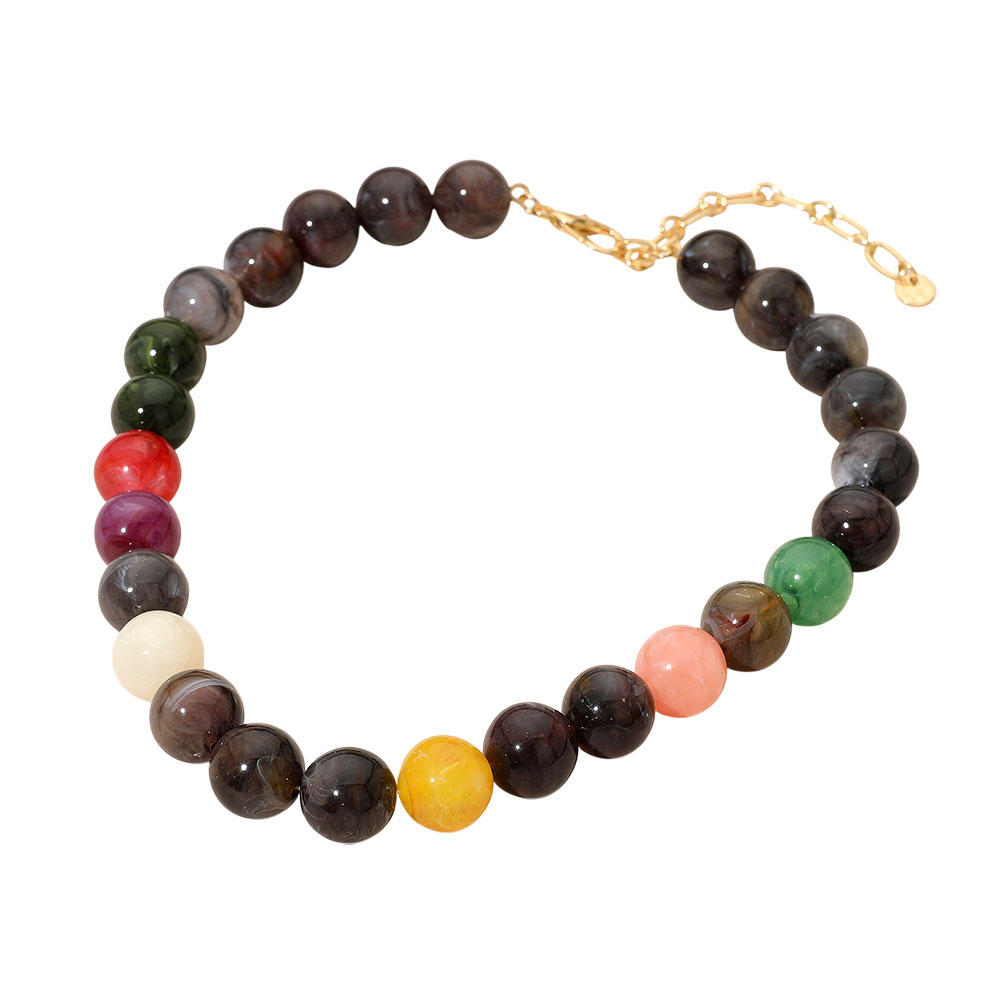 • Stylish necklace featuring polished round beads in a mix of tones, complemented by an adjustable chain for versatile wear. A perfect accessory to elevate casual outfits or add a playful touch to evening ensembles.