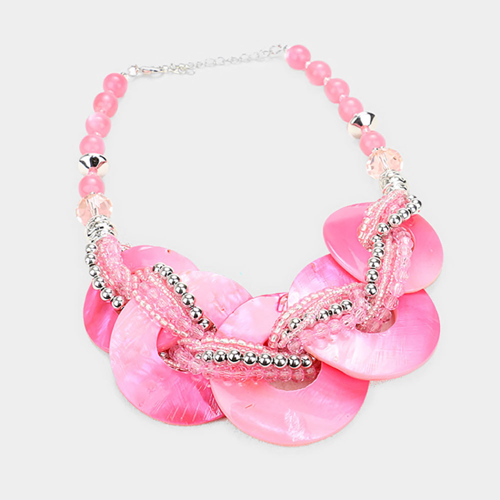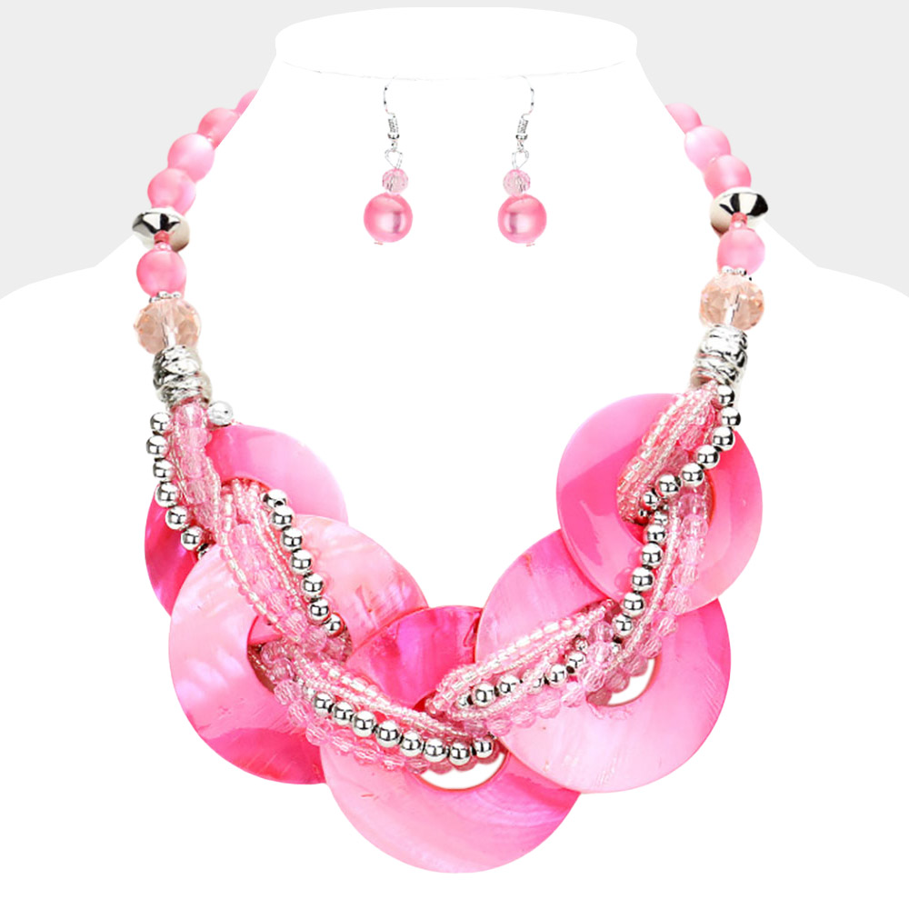 Details • Necklace Size : 17" + 3" L • Decor Size : 2.25" L • Earring Size : 1.5" L • Make a bold impression with this layered beaded statement necklace and matching earrings set. Designed with oversized circular accents and mixed bead strands, it adds vibrant energy and artistic flair to any outfit, perfect for elevating casual or evening looks effortlessly. • Lead and Nickel Compliant