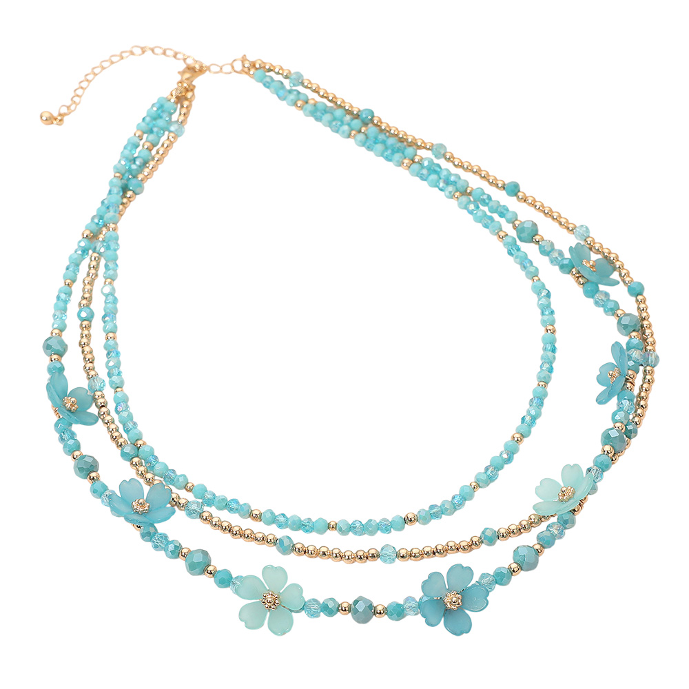 Details • Necklace Size : 15.5" + 3" L • Decor Size : 2" L • Embrace elegance with this layered floral beaded necklace. Featuring delicate multi-strand design with shimmering beads and petite flower accents, it adds a playful yet refined touch to any ensemble—perfect for both casual charm and special occasions. • Lead and Nickel Compliant