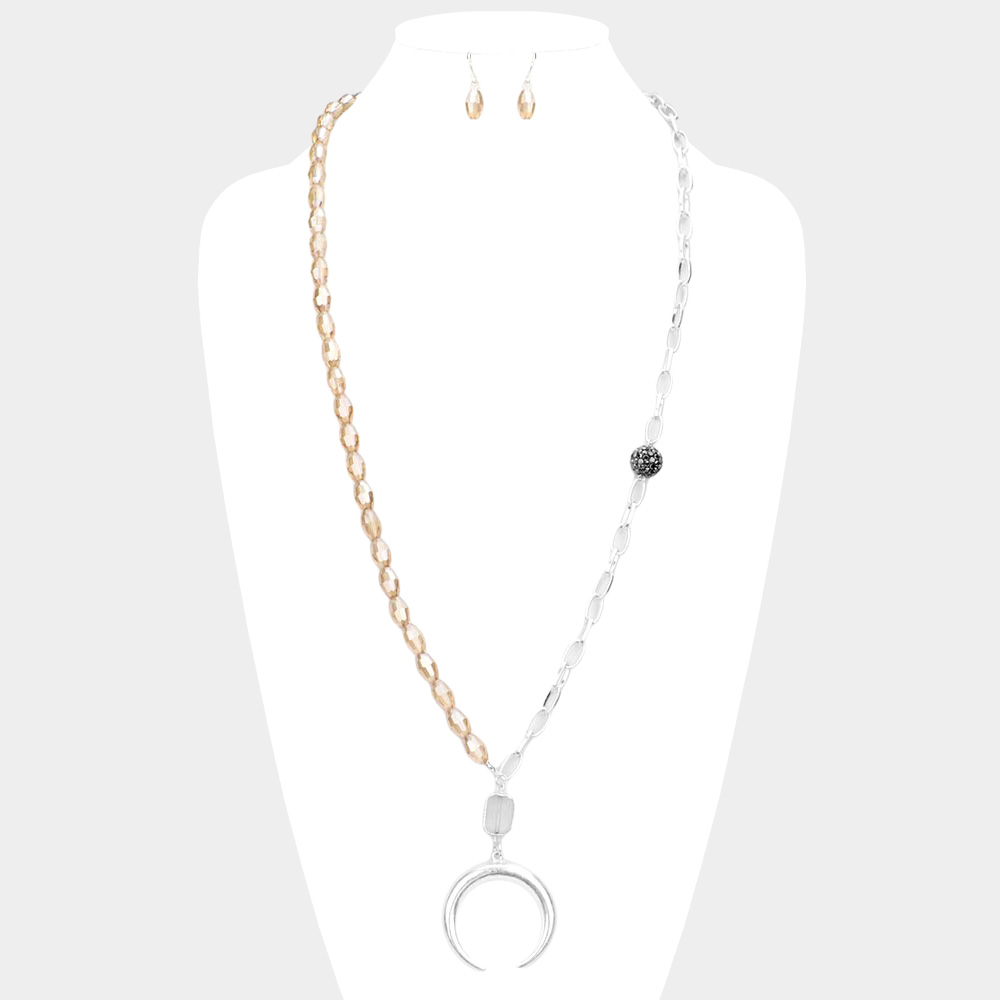 Metal Double Horn Pendant Beaded Long Necklace