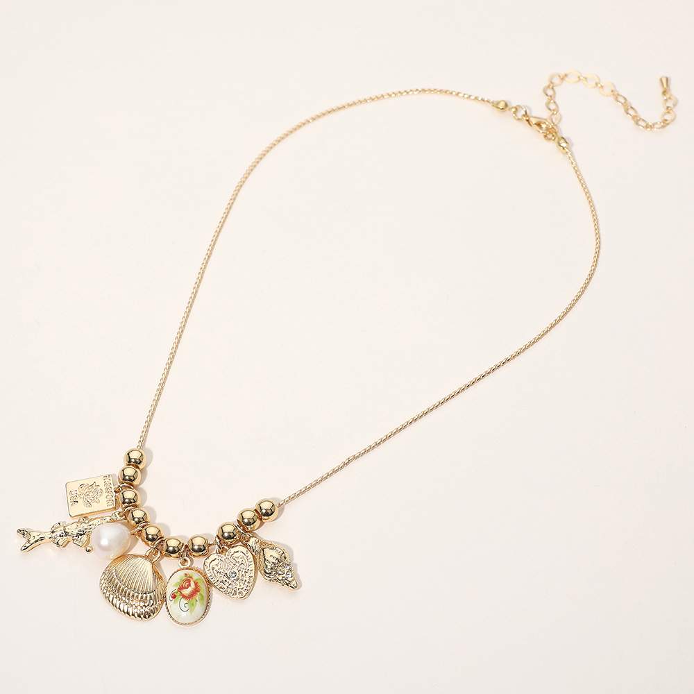 Metal Fish Shell Passport Puka Shell Heart Pearl Ceramic Charm Beaded Necklace