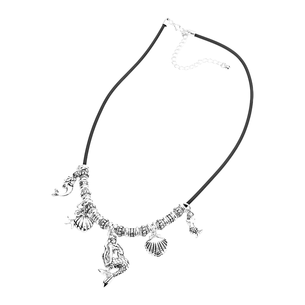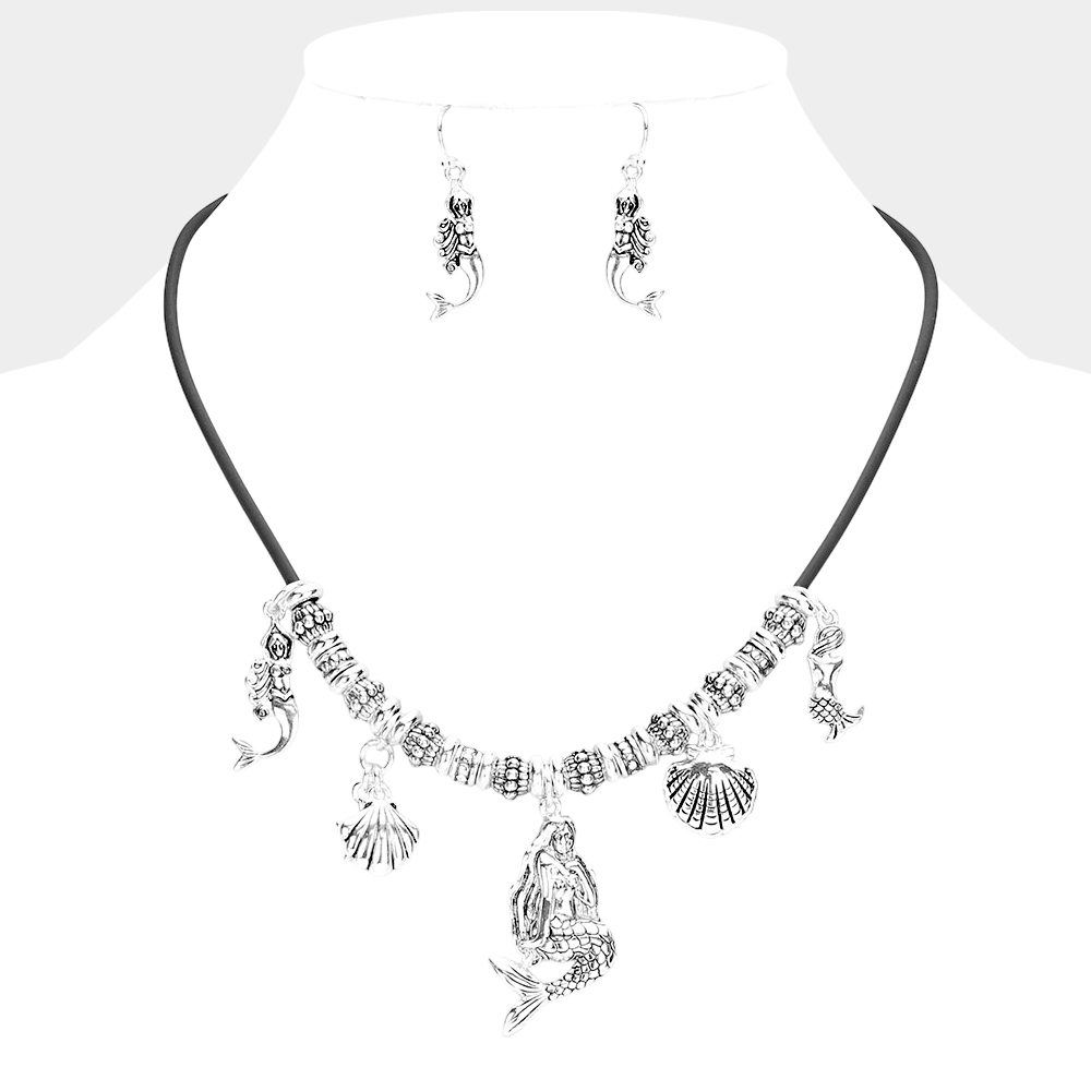 Vintage Stone Accent Cross Heart Charm Station Necklace
