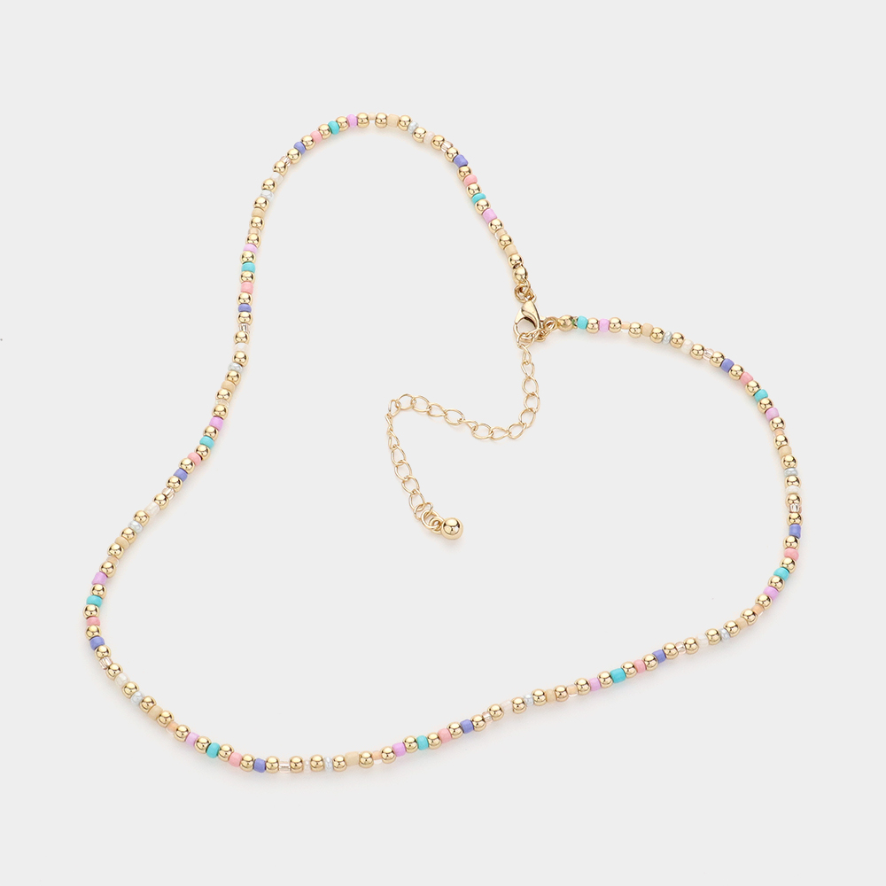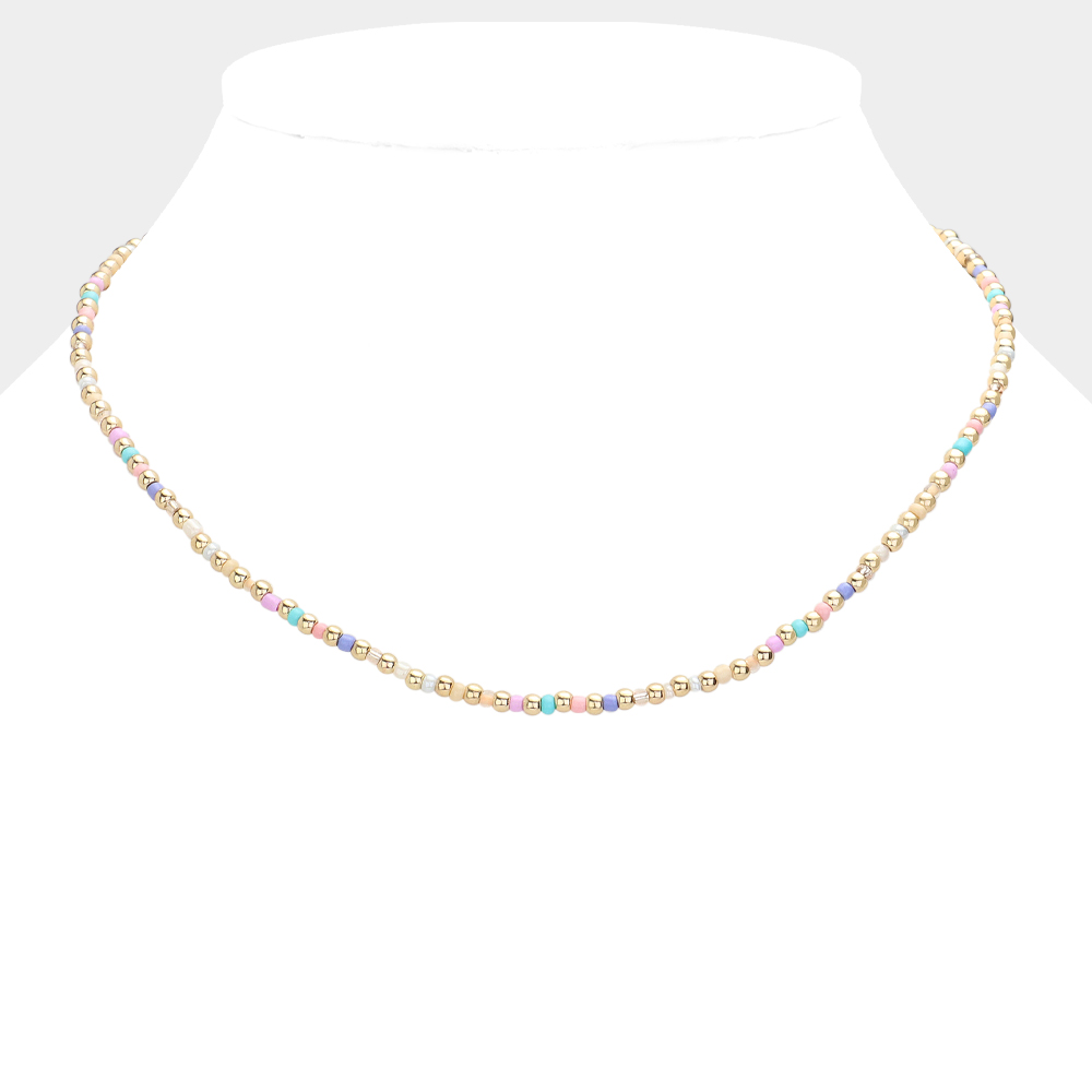 Metal Multi Color Beaded Necklace