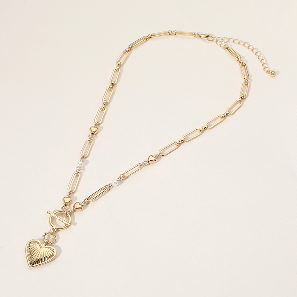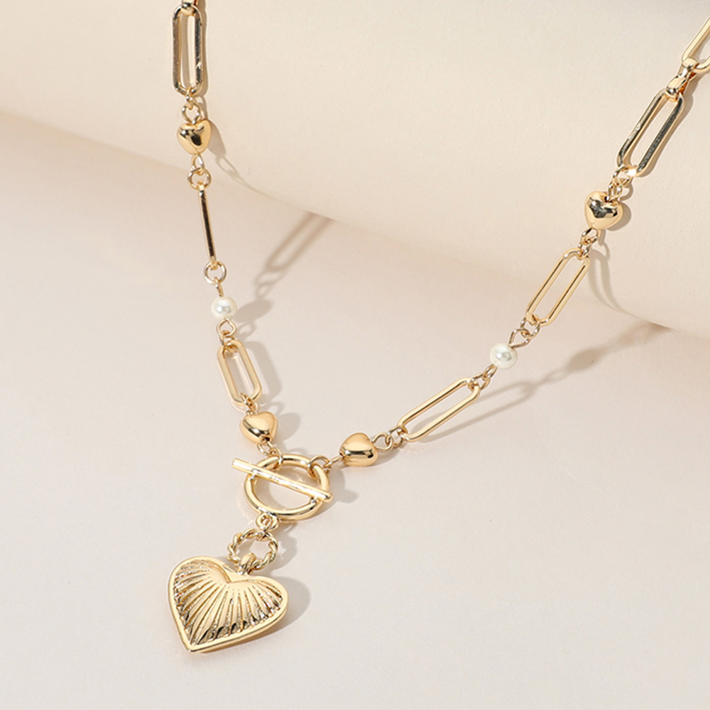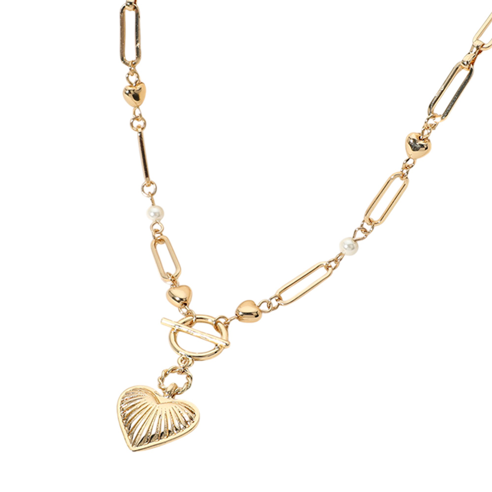 Metal Toggle Heart Pearl Pointed Oval Chain Necklace