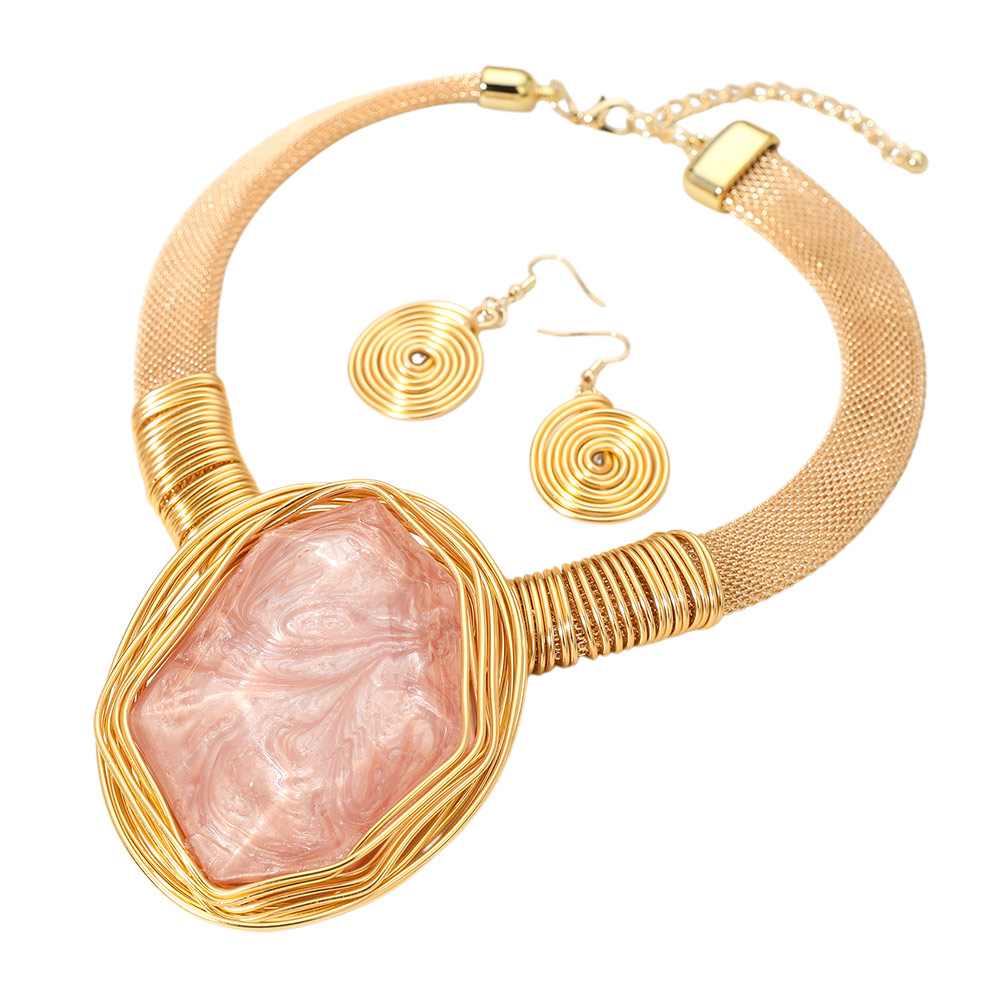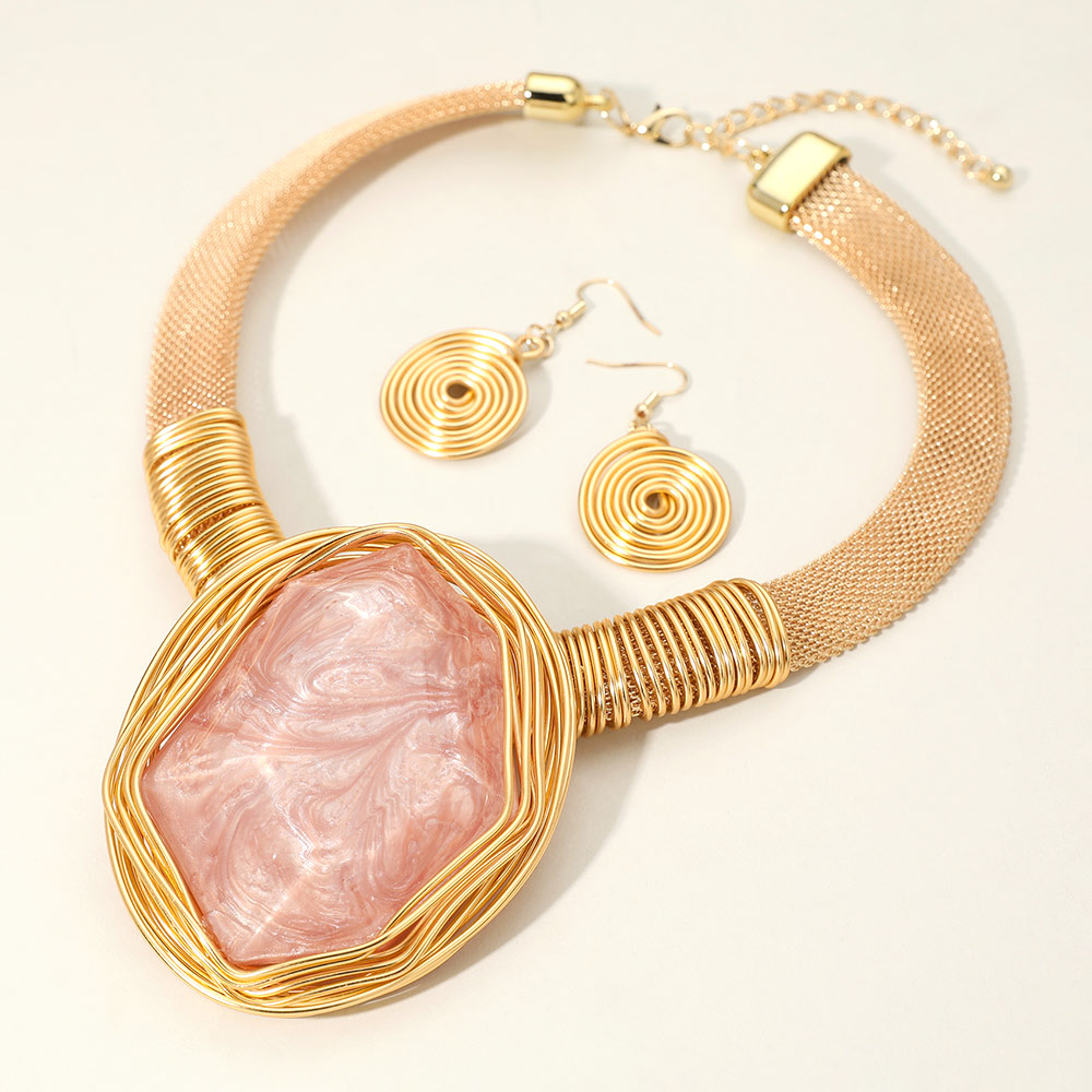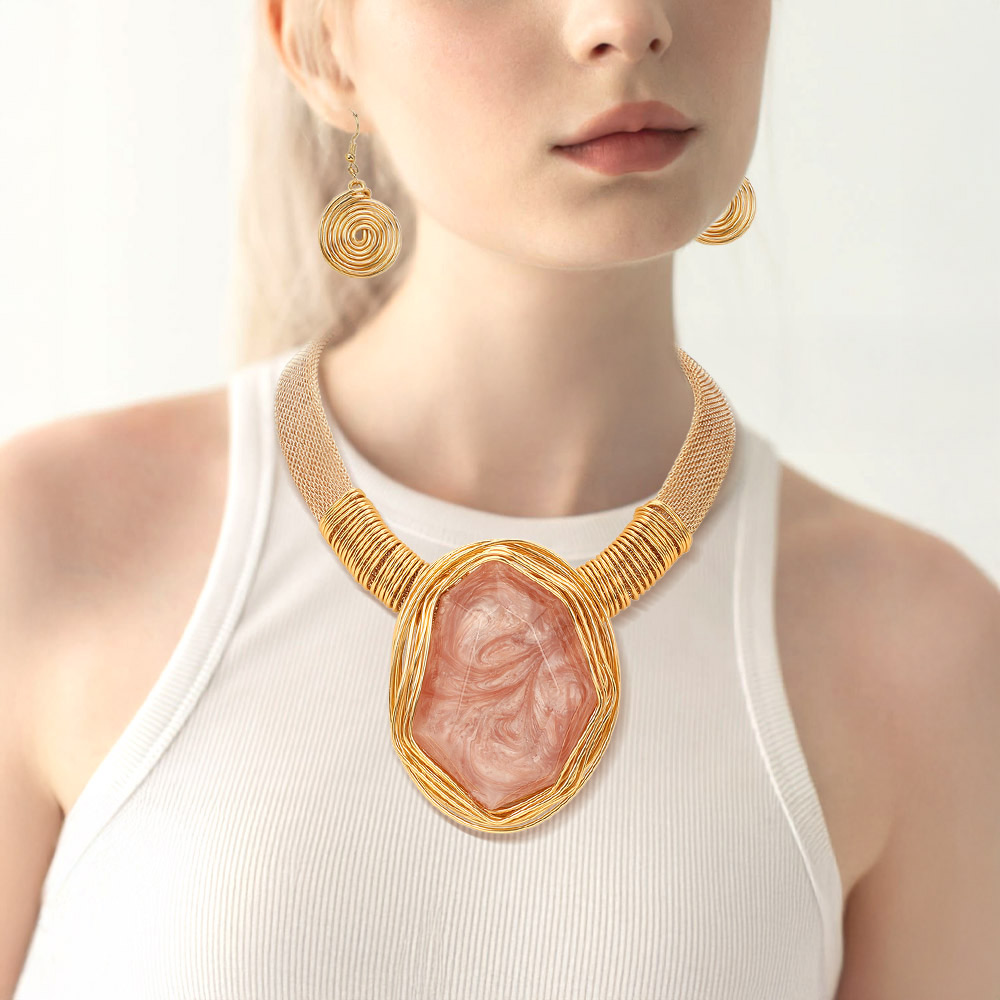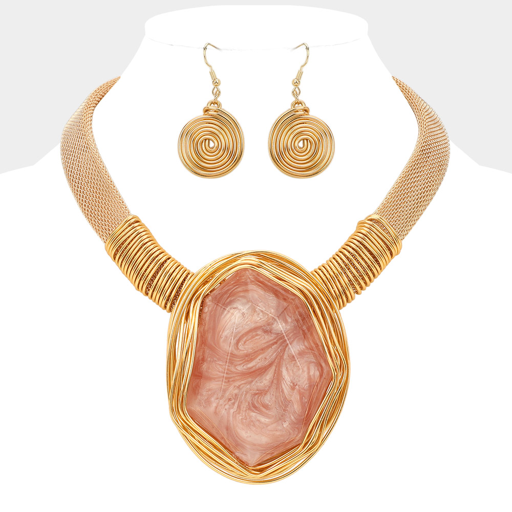Metal Wire Wrapped Bold Geometric Pendant Accented Statement Necklace