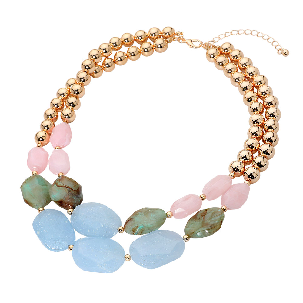 Multi Color Resin Pebble Beaded Layered Statement Necklace