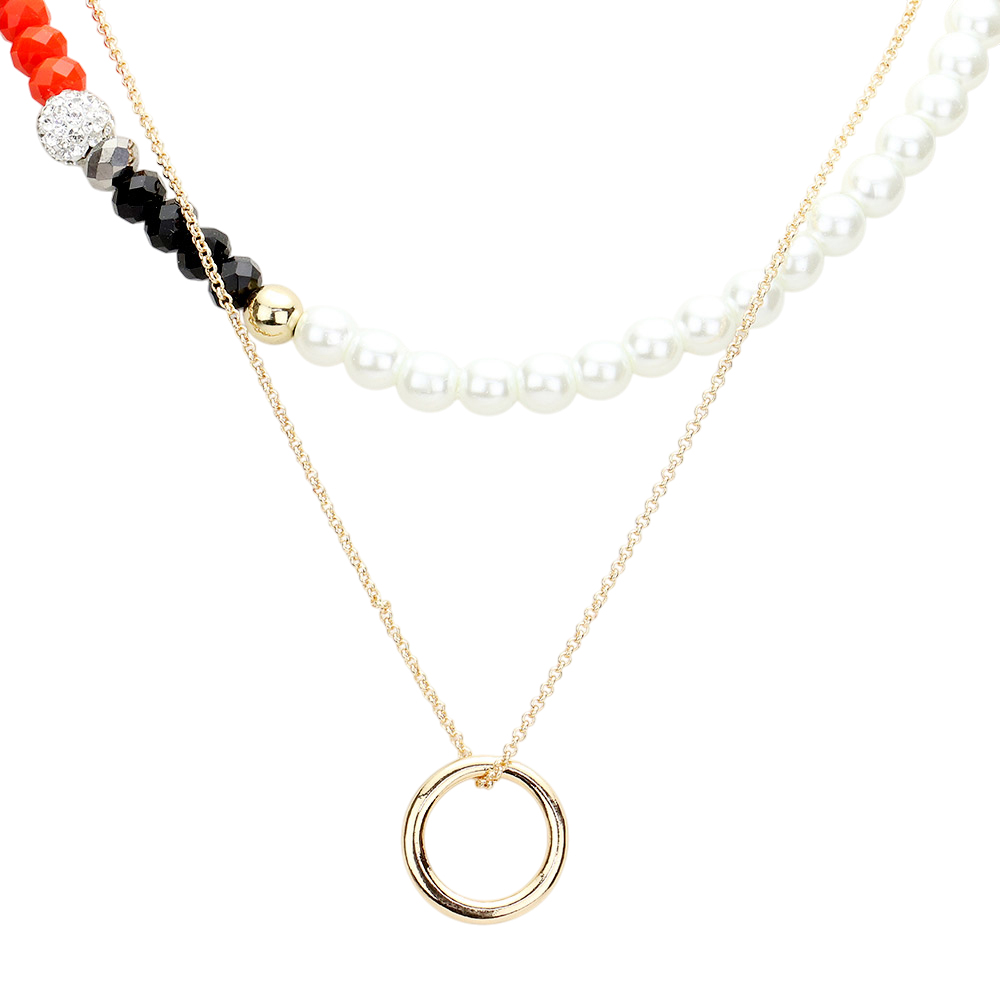 Open Metal Circle Pendant Pearl Shamballa Ball Faceted Beaded Necklace