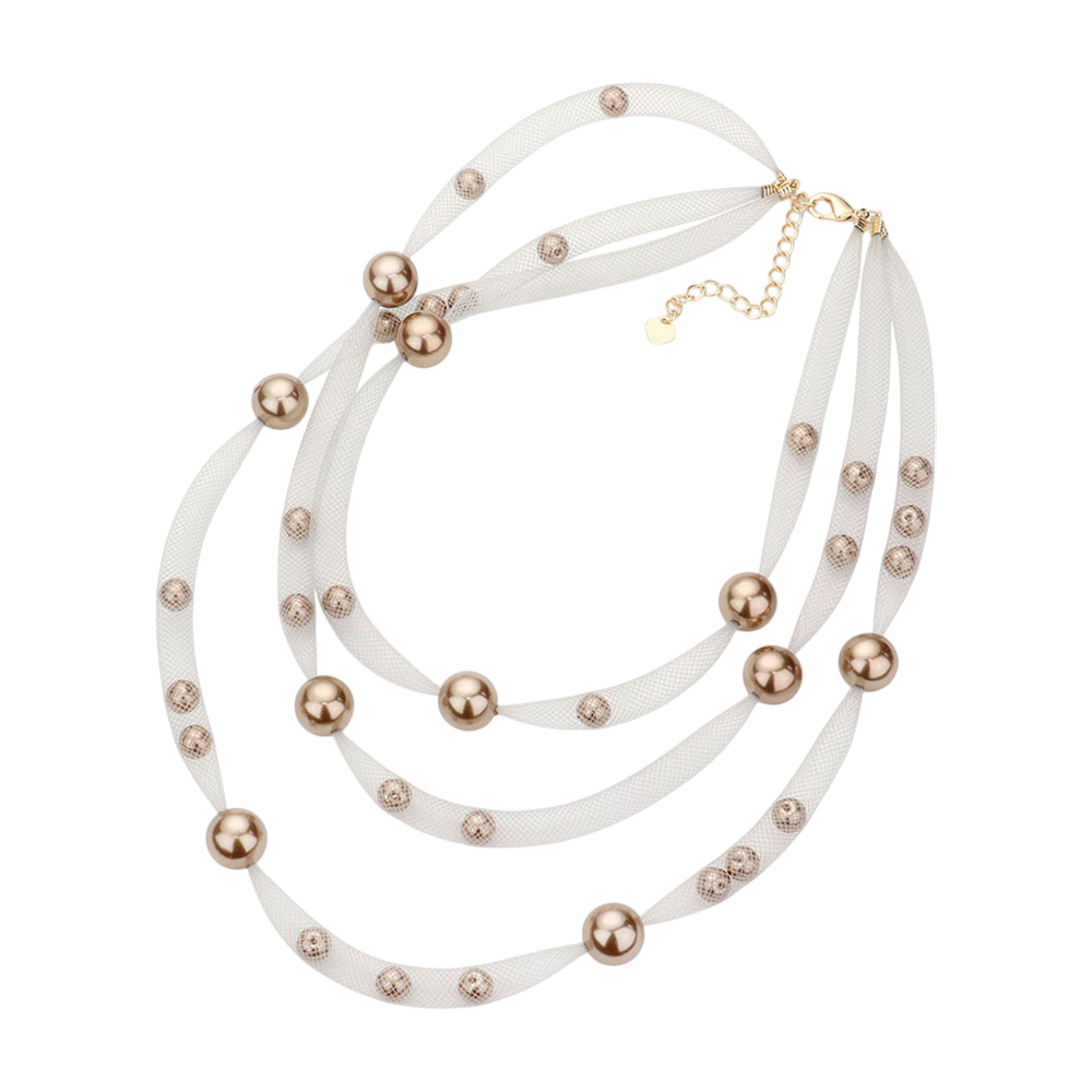 Pearl Accented Triple Layered Mesh Bib Necklace
