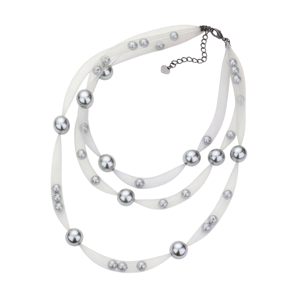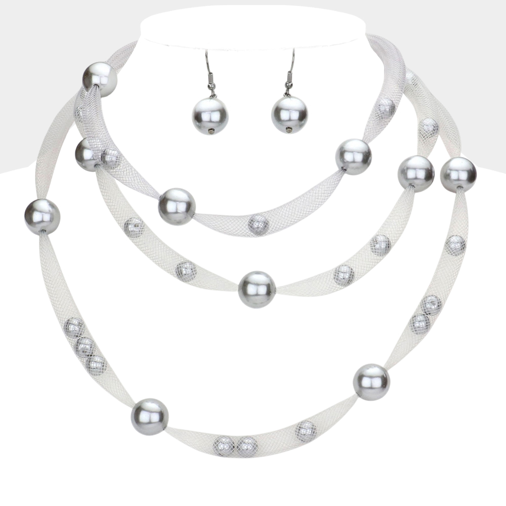 Pearl Accented Triple Layered Mesh Bib Necklace