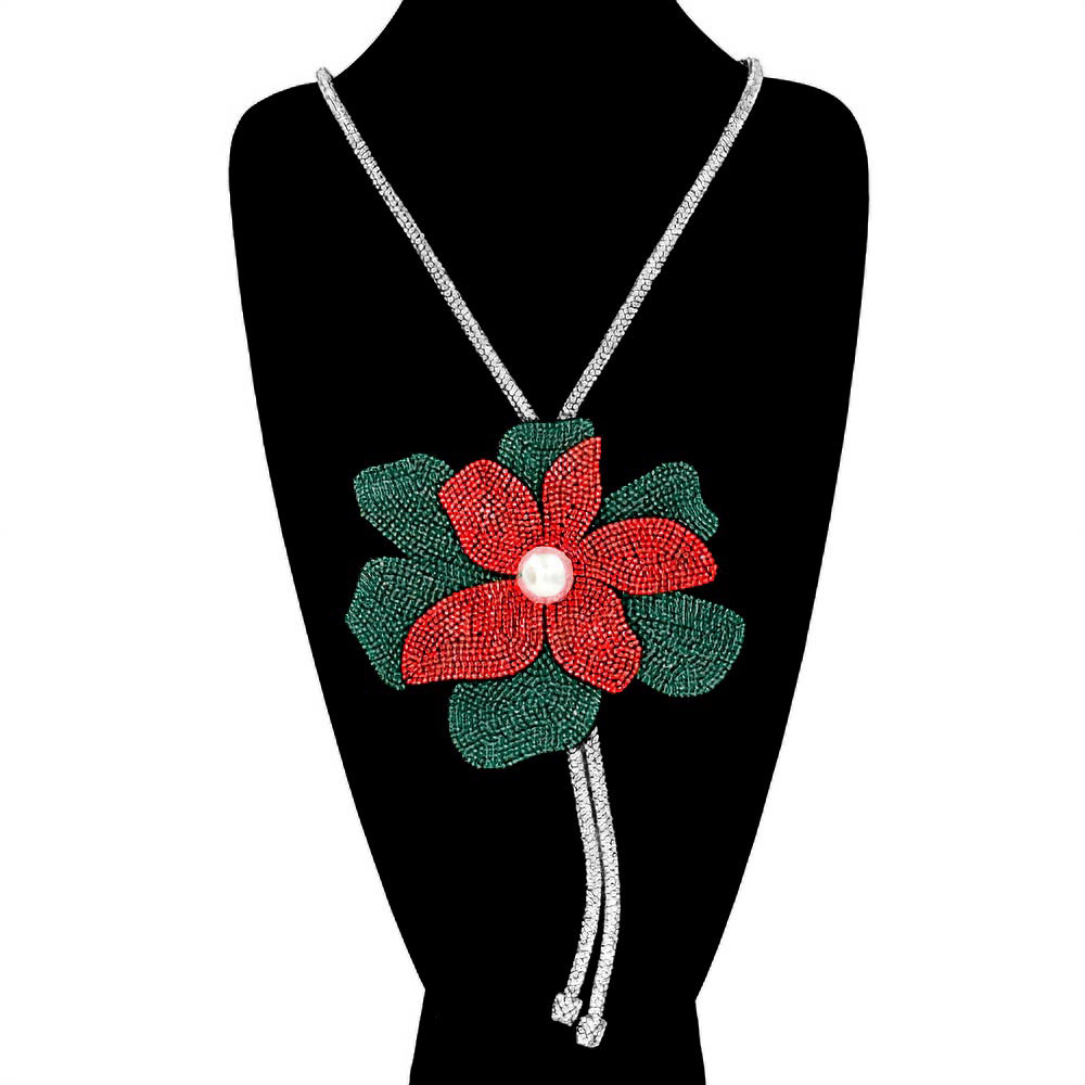 • Showcase your style with this statement necklace featuring an intricately beaded flower pendant and a central accent bead. Designed with an adjustable cord for versatile wear, this piece adds artistic elegance and eye-catching charm to any outfit, from casual to dressy.