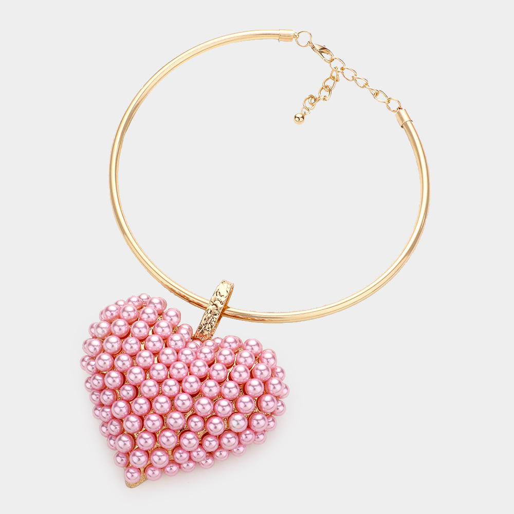 Stone Paved LOVE YOU Heart Pendant Pearl Bead Station Chain Necklace