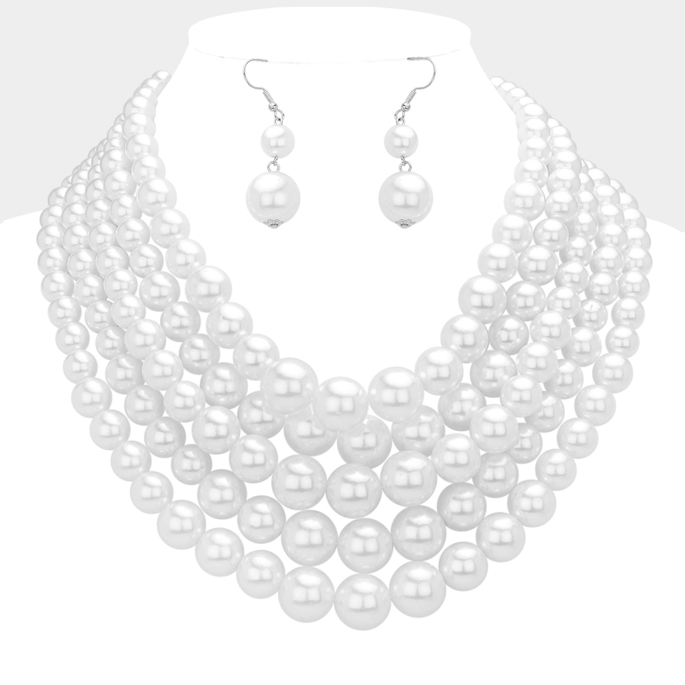 • This multi strand statement necklace set features layered bead detailing with matching drop earrings for a coordinated, polished look. Designed to elevate everyday outfits or special occasion styling, it offers bold dimension and classic appeal, making it a versatile accessory choice for gifting, events, or standout seasonal displays.