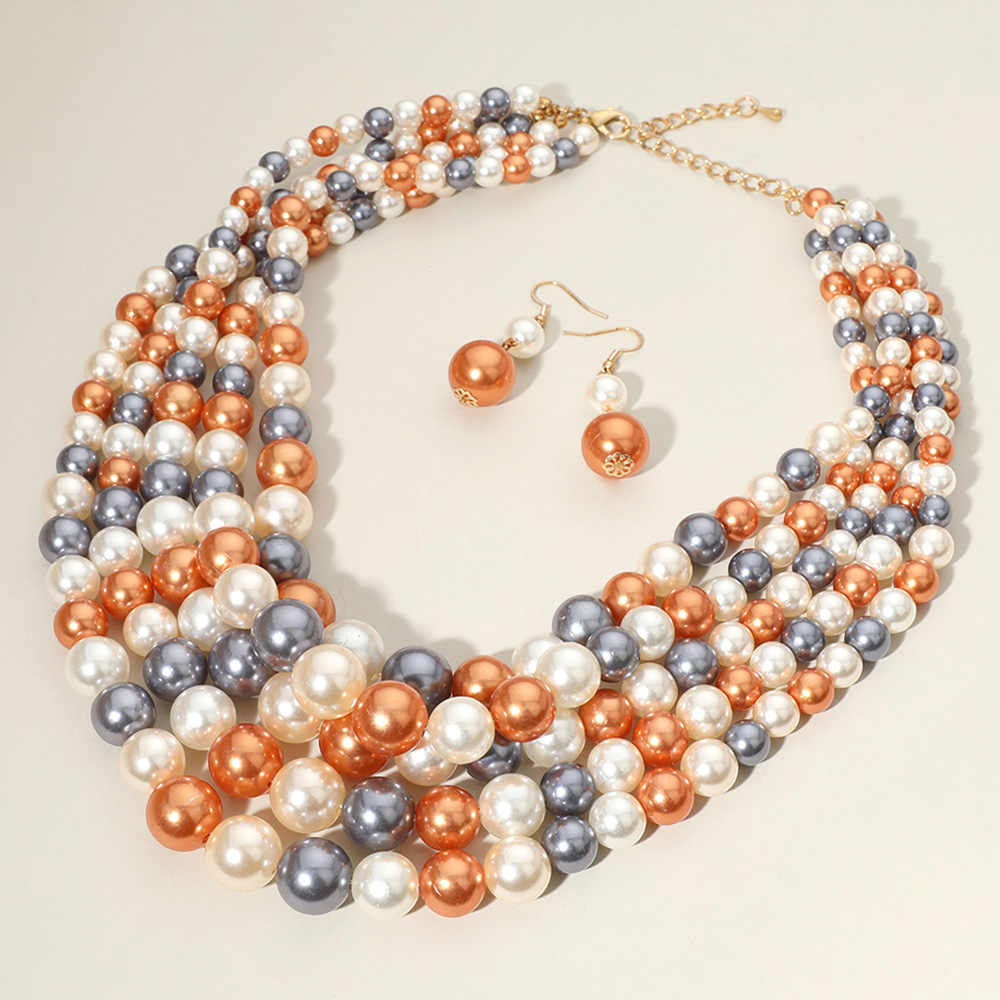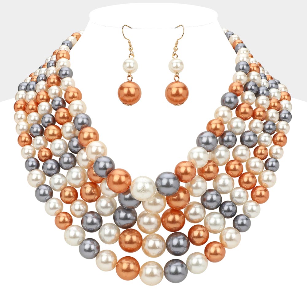 • This multi strand statement necklace set features layered bead detailing with matching drop earrings for a coordinated, polished look. Designed to elevate everyday outfits or special occasion styling, it offers bold dimension and classic appeal, making it a versatile accessory choice for gifting, events, or standout seasonal displays.