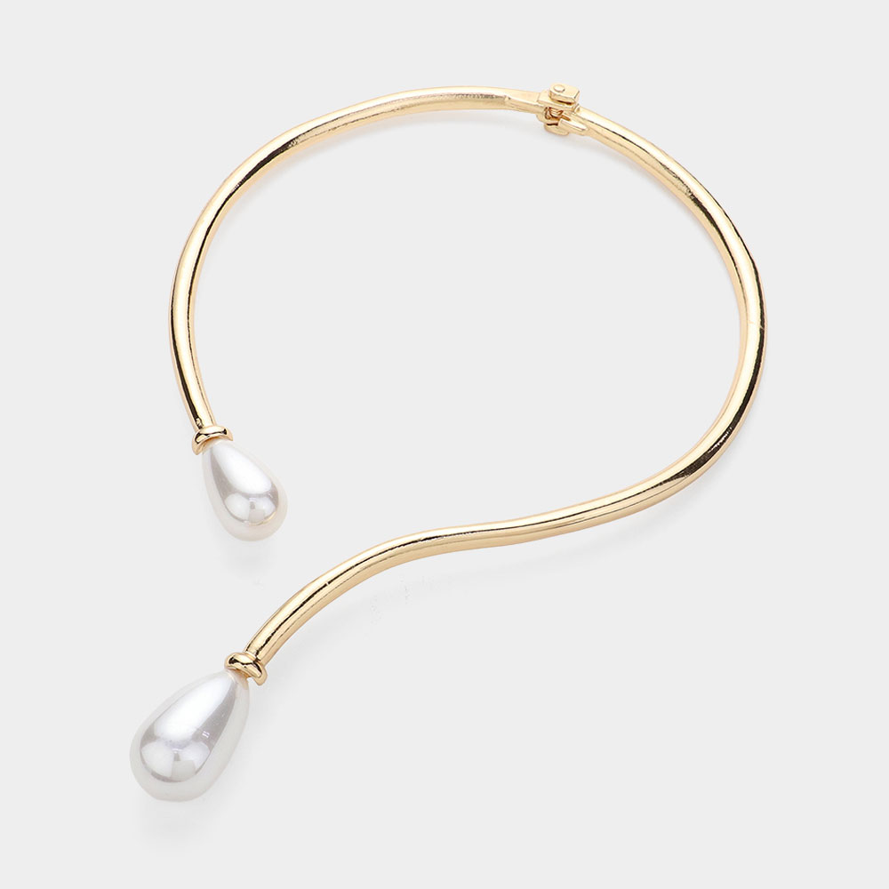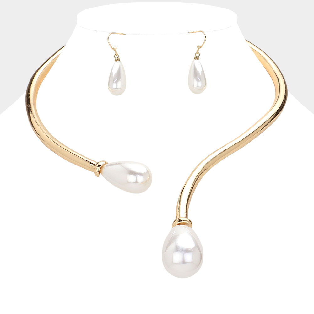 Bold Pearl Tip Modern Coil Drop Accent Statement Necklace