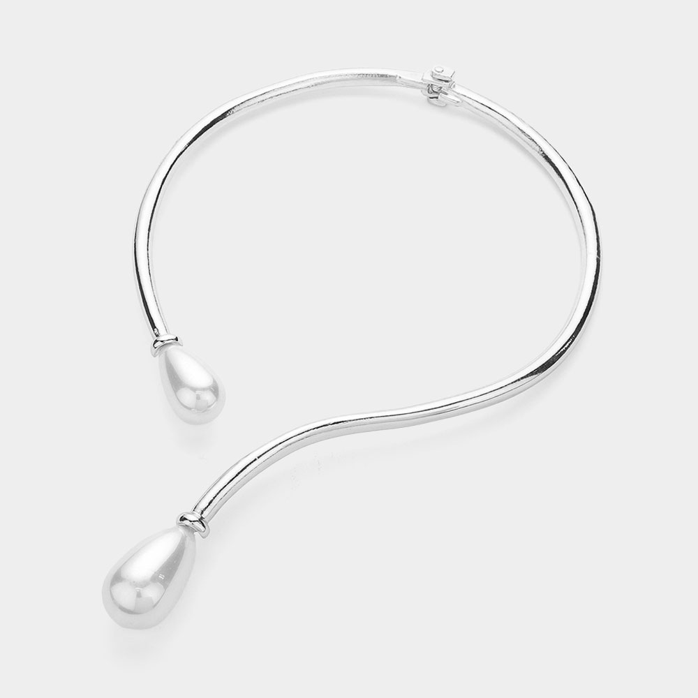Bow Pearl Heart Pendant Pearl Bead Station Necklace