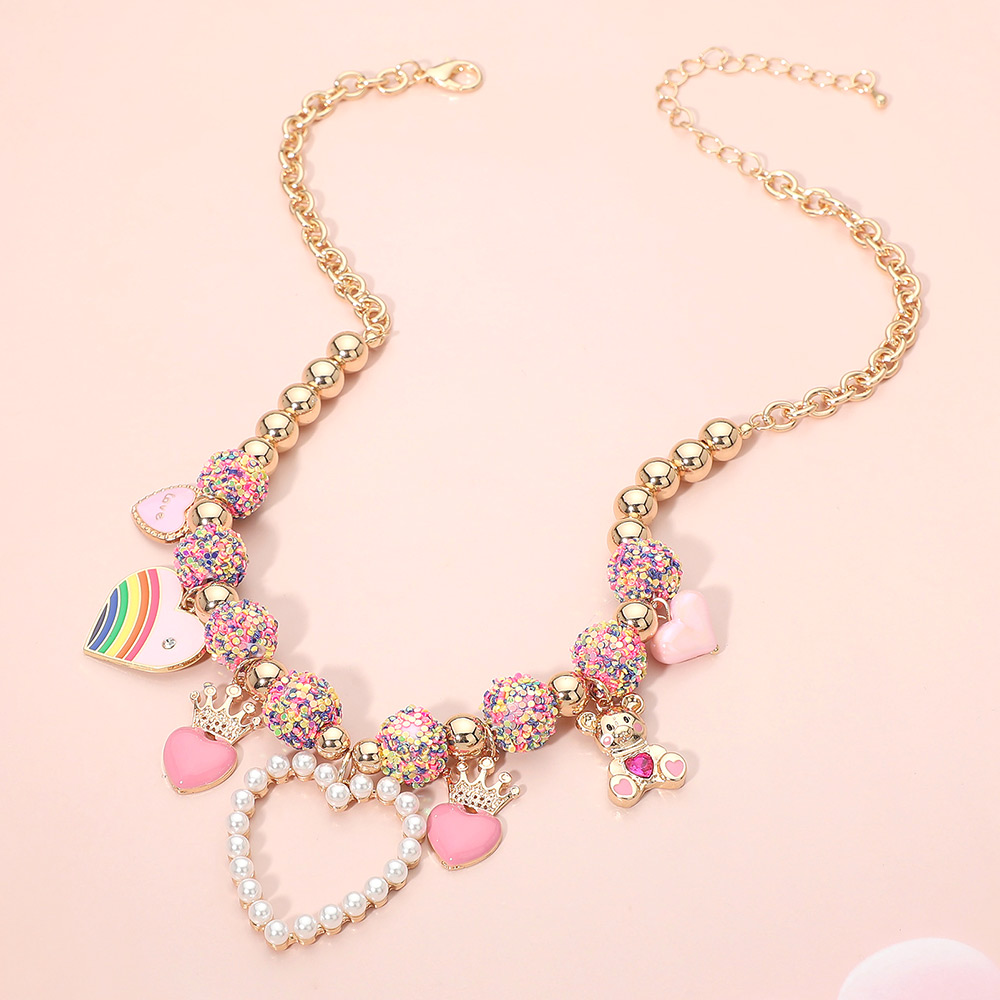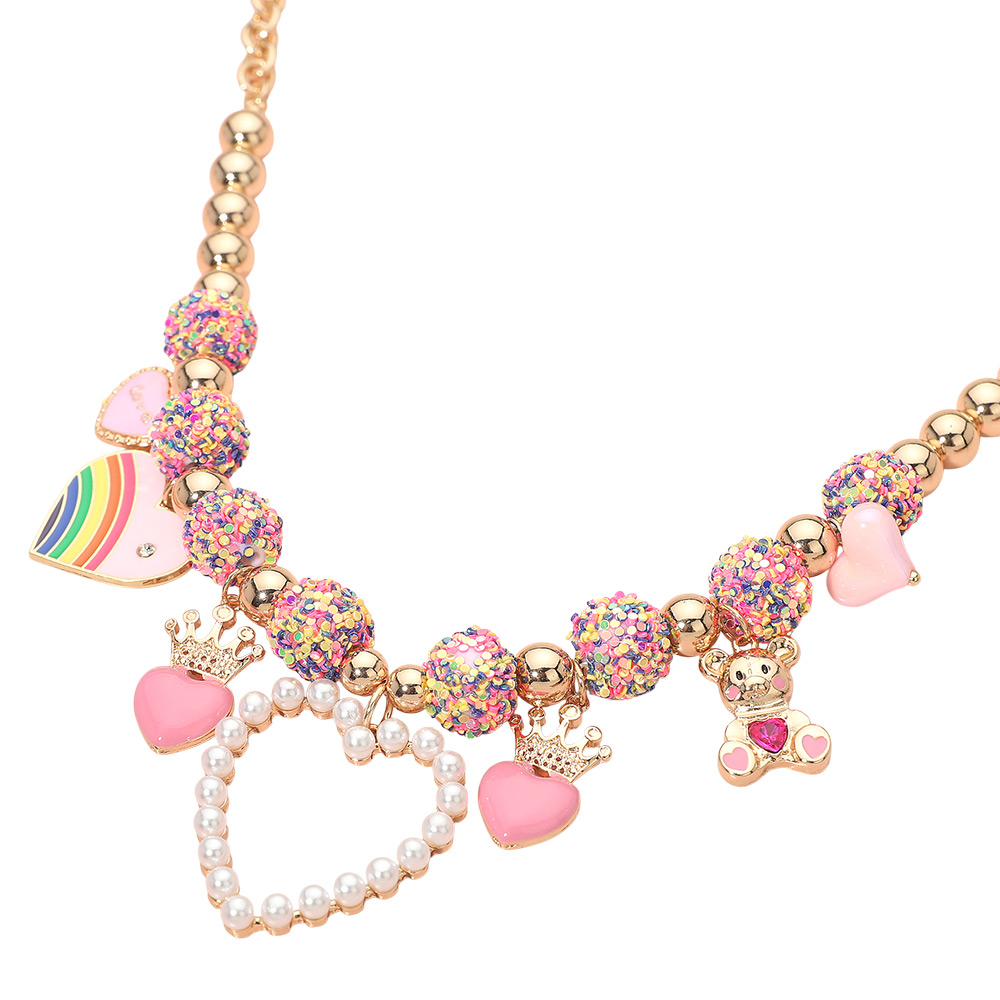 Details • Necklace Size : 17" + 3.25" L • Decor Size : 1.5" L • Whimsical charm necklace featuring a beaded design accented with heart and novelty motifs for a fun, statement-making look. Designed to add personality and movement, this necklace elevates everyday outfits, party styling, and gifting selections, making it a standout piece for boutique accessory collections. • Lead and Nickel Compliant