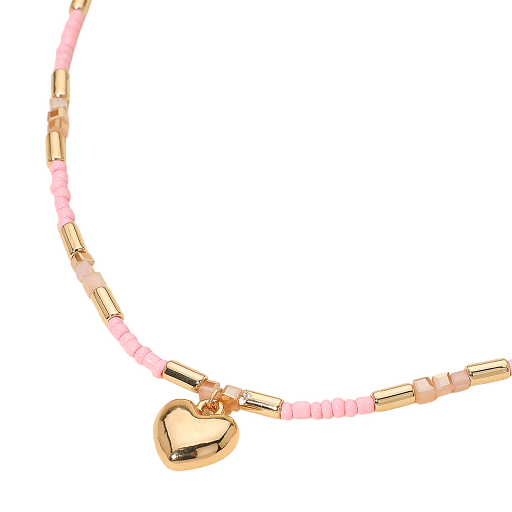 • Add a playful romantic touch with this heart charm beaded necklace featuring a slim, lightweight design and dainty charm detail. Ideal for everyday styling or thoughtful gifting, it layers beautifully or shines solo for a subtle statement finish.