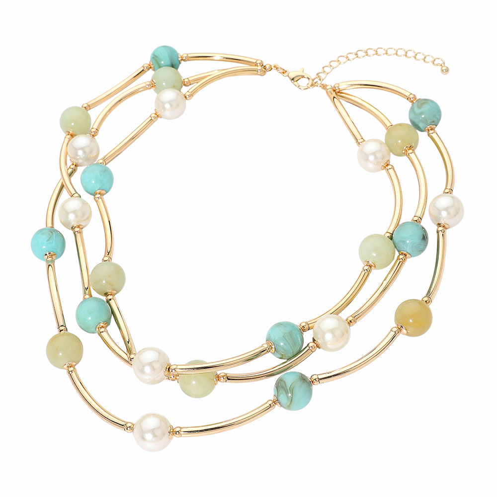 Resin Ball Pearl Metal Bar Beaded Double Strand Necklace