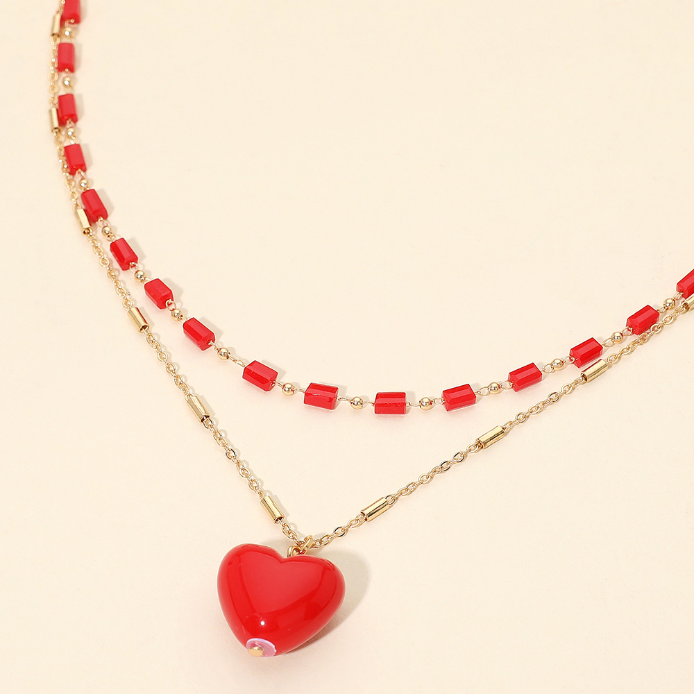 Details • Necklace Size : 14" + 3.25" L • Decor Size : 1.5" L • Pendant Size : 0.75" X 0.75" • Elevate everyday styling with this layered heart pendant necklace featuring dual chain detailing and a bold charm centerpiece. Designed for easy layering or standout solo wear, it adds a romantic statement to casual or dressy looks and makes a thoughtful gift choice. • Brass • Lead and Nickel Compliant