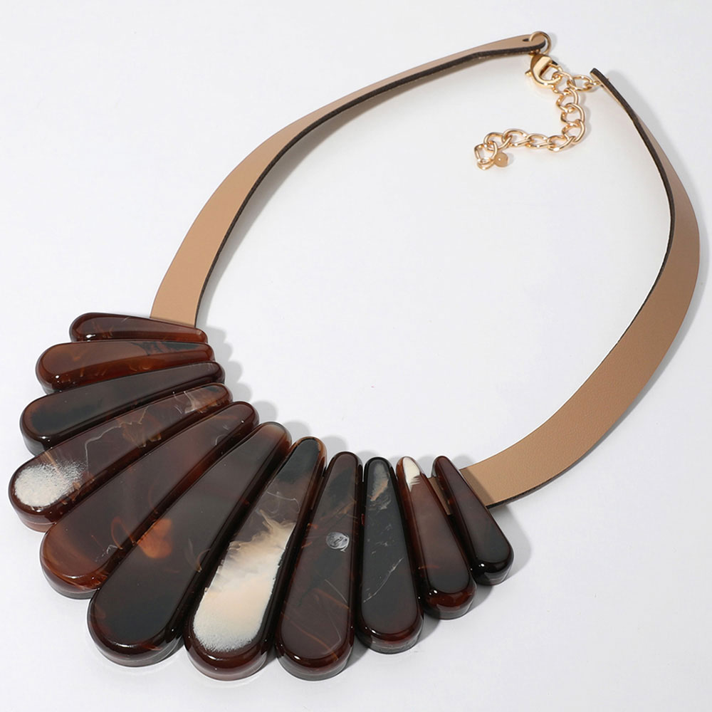 Resin Long Teardrop Plate Faux Leather Statement Necklace