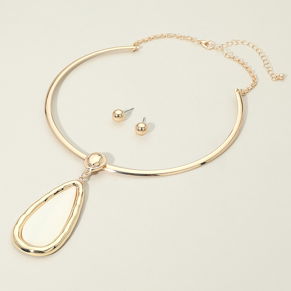 • This teardrop pendant collar necklace and stud earring set delivers a clean, modern statement with a sleek curved collar and bold drop accent. Designed for boutique collections, it offers effortless styling for everyday wear, special occasions, gifting, and polished fashion looks.
