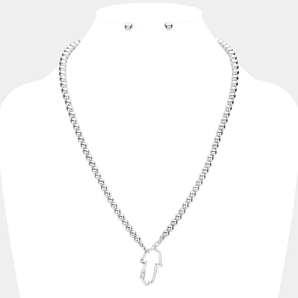 Rhinestone Embellished Hamsa Hand Pendant Necklace