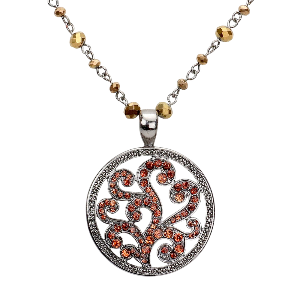 Rhinestone Embellished Metal Round Pendant Necklace