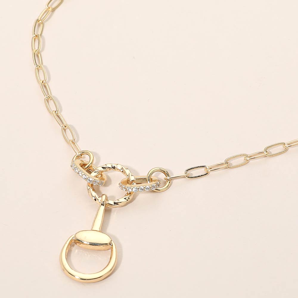 Rhinestone Paved Horseshoe Link Paperclip Chain Necklace