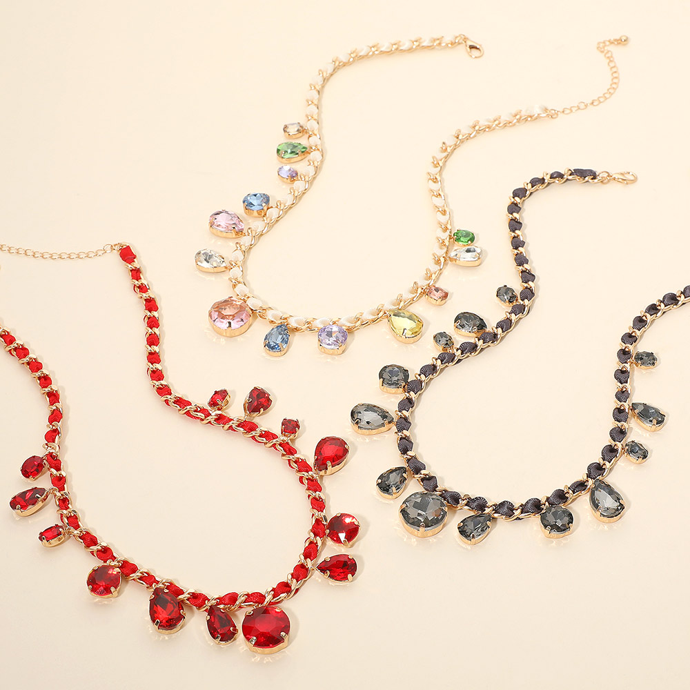 Round Teardrop Stone Cluster Station Bow Braided Chain Necklace Round Teardrop Stone Cluster Station Bow Braided Chain Necklace Round Teardrop Stone Cluster Station Bow Braided Chain Necklace