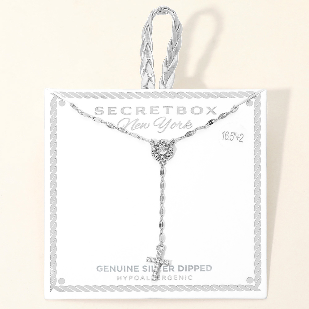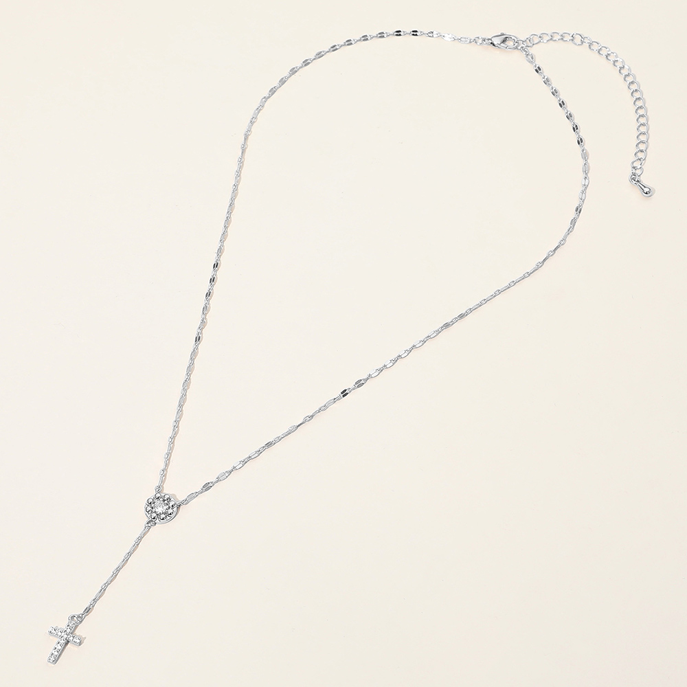 Details • Necklace Size : 16.5" + 2" L • Decor Size : 2" • Elegant drop pendant necklace featuring a refined cross charm suspended from a decorative chain design. Lightweight and comfortable with an adjustable length, it’s perfect for everyday wear, layering, and special occasions. A timeless accessory that adds meaningful style, ideal for gifting and polished, modern looks. • Sterling Silver Dipped • Hypoallergenic