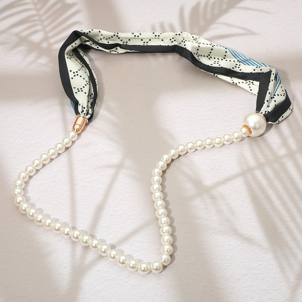 SECRET BOX_Pattern Print Fabric Scarf Pearl Magnetic Necklace