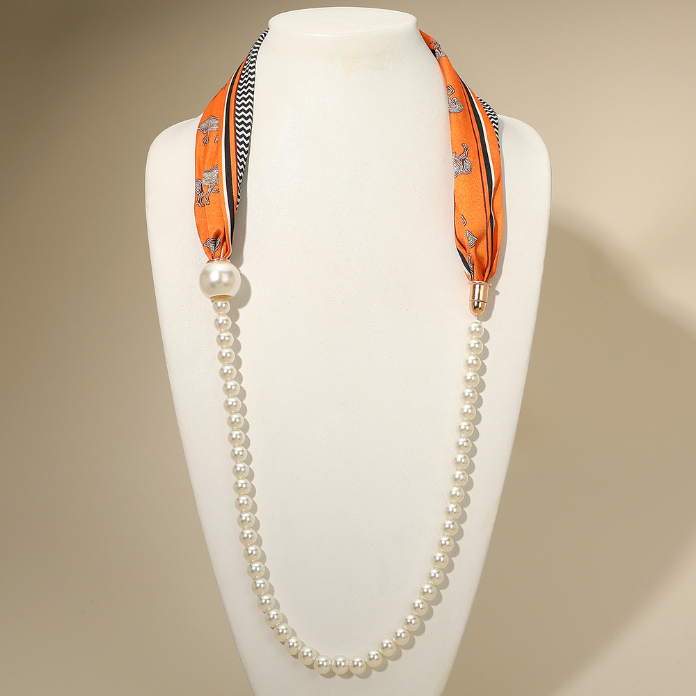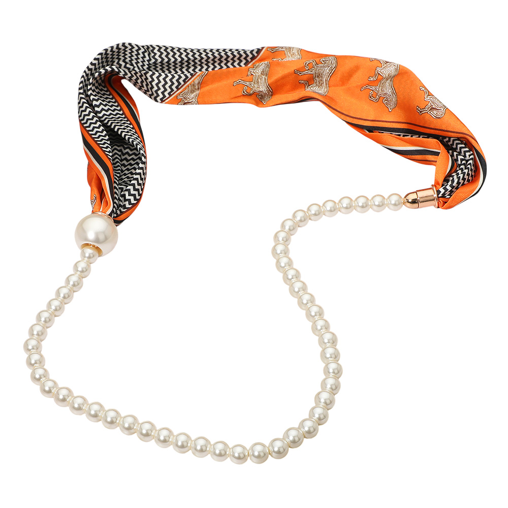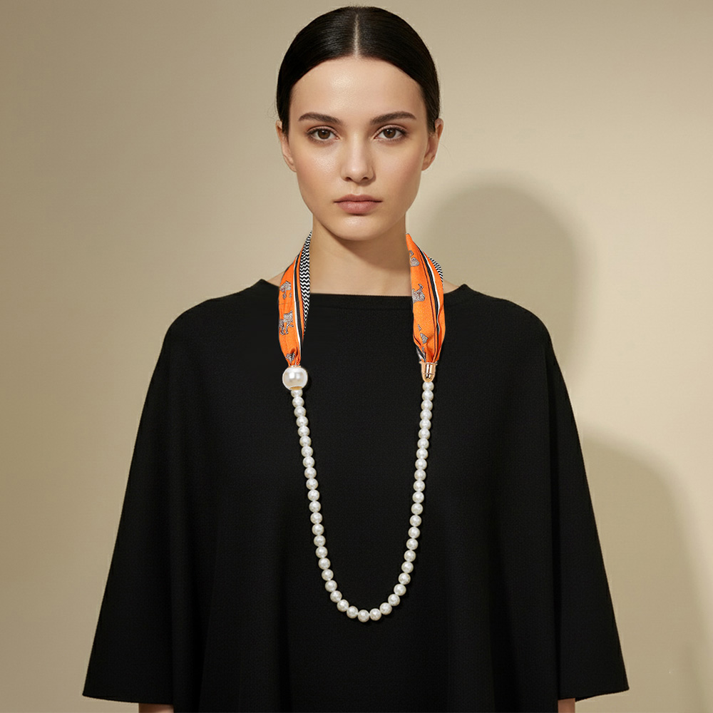 SECRET BOX_Pattern Print Fabric Scarf Pearl Magnetic Necklace
