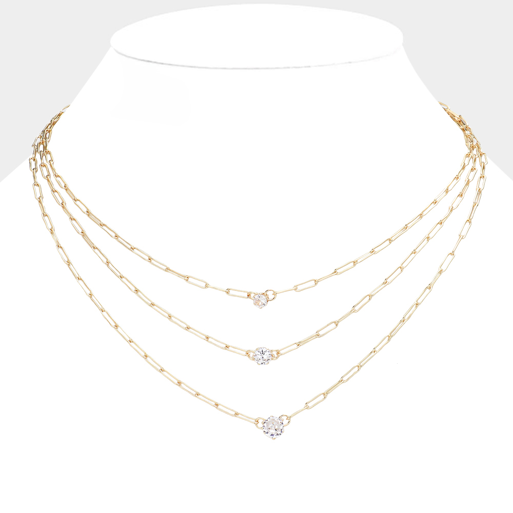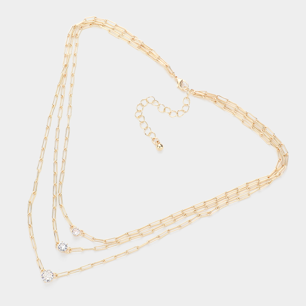 SECRET BOX_Rhinestone Bezel Pendant Chain Layered Necklace