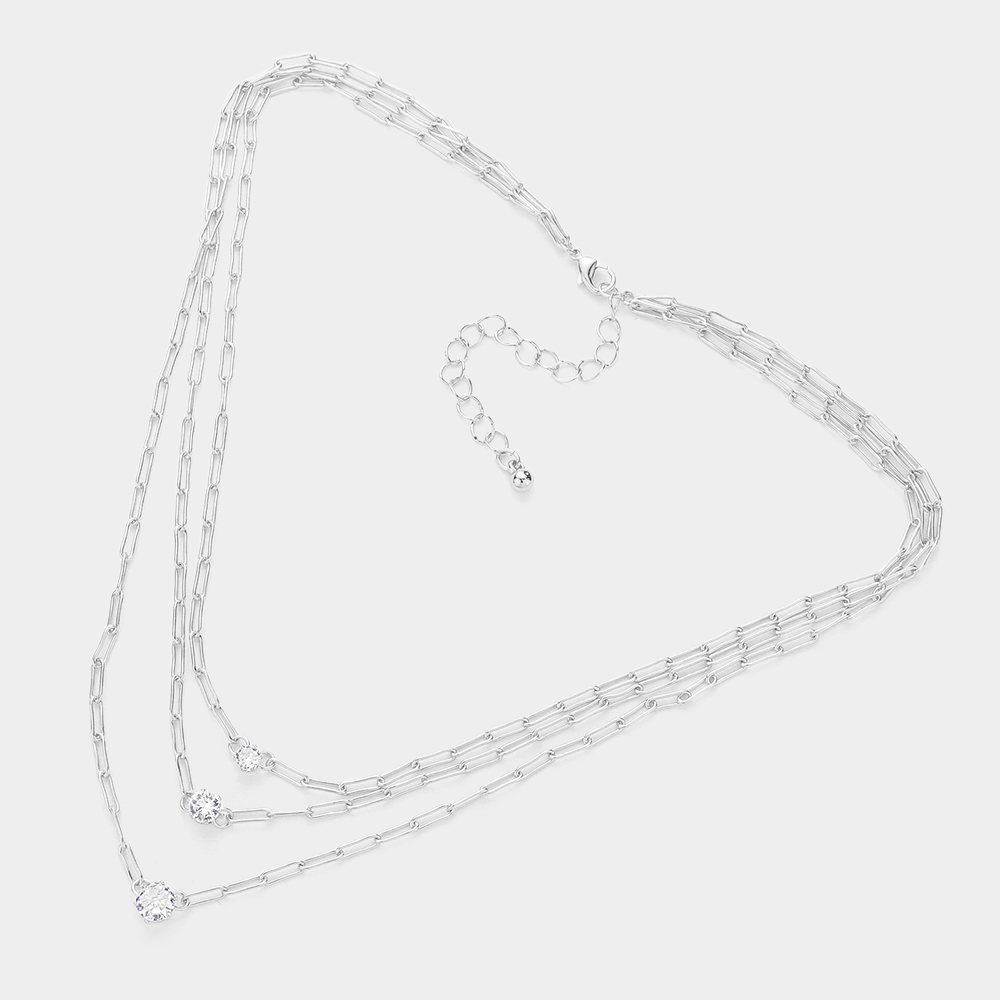 SECRET BOX_Rhinestone Bezel Pendant Chain Layered Necklace