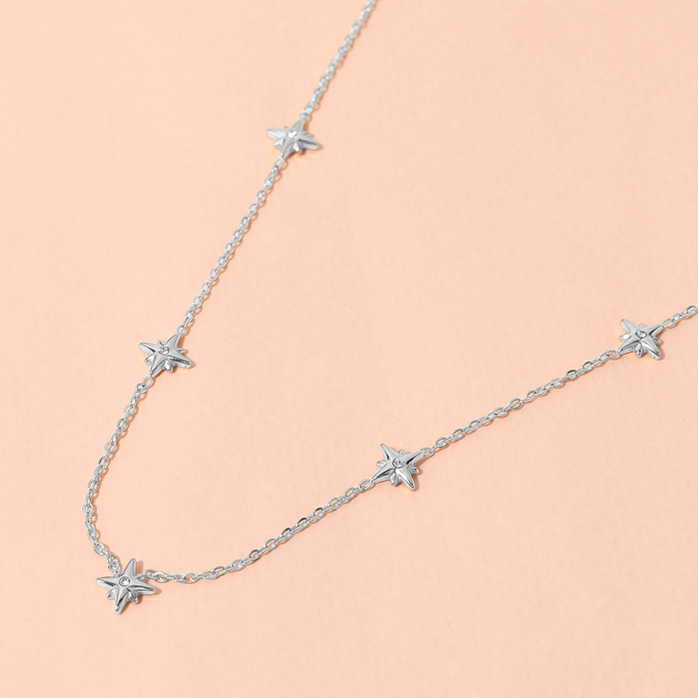 SECRET BOX_Stainless Steel Stone Pointed Starburst Station Necklace