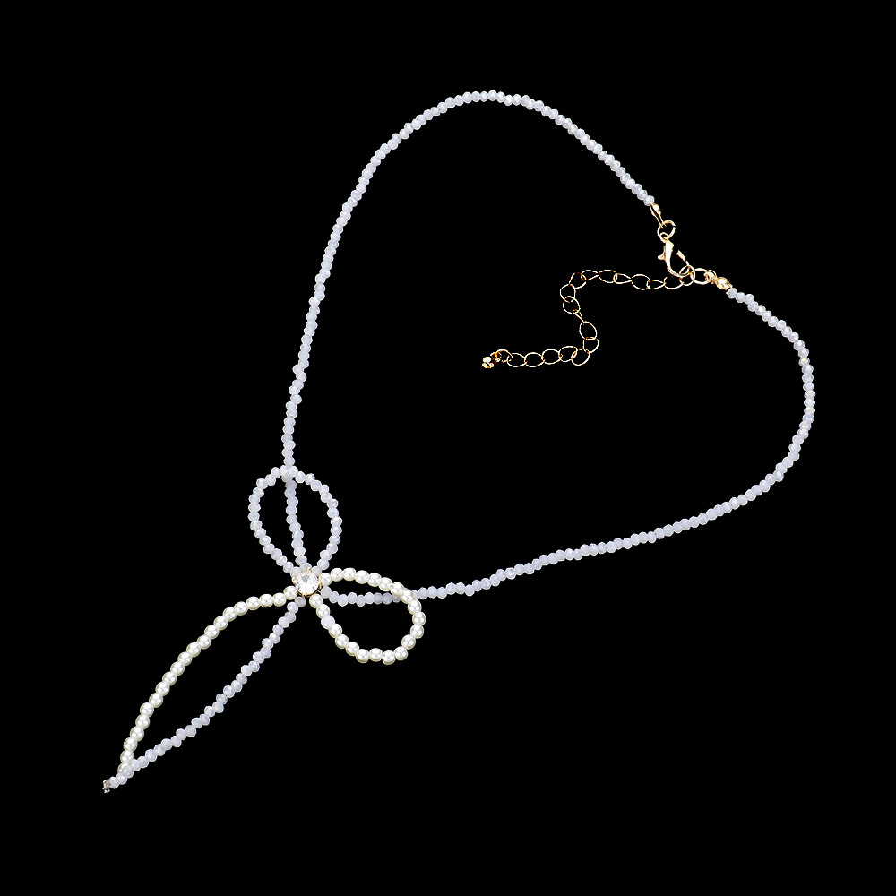SECRET BOX_Stone Pointed Faceted Beaded Bow Necklace