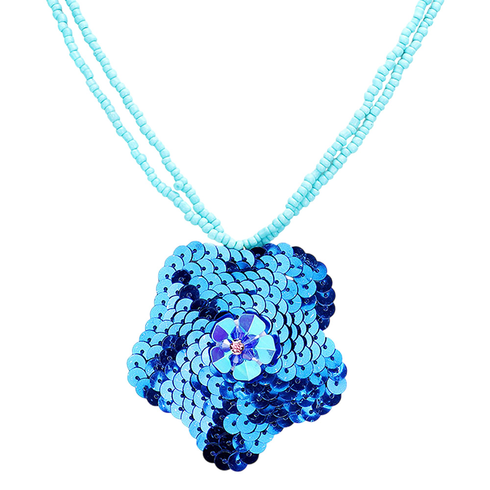 Sequin Cluster Flower Seed Beaded Necklace