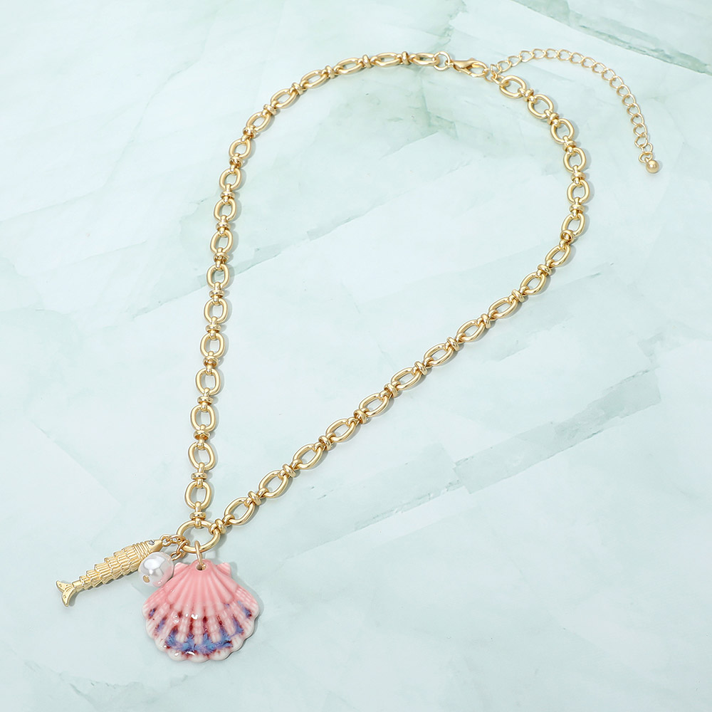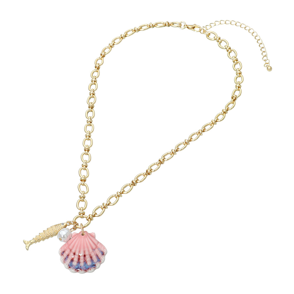 • Coastal-inspired pendant necklace featuring a sculpted shell charm paired with a delicate accent detail on a classic chain. Designed to add an effortless beachy touch to everyday outfits, this necklace is ideal for seasonal collections, resort styling, and giftable accessory assortments for boutiques and online shops.