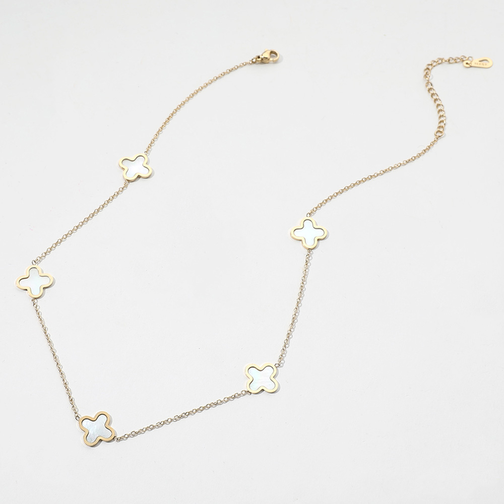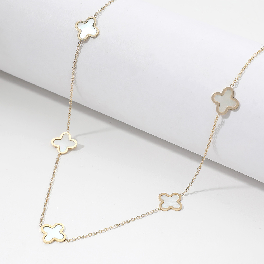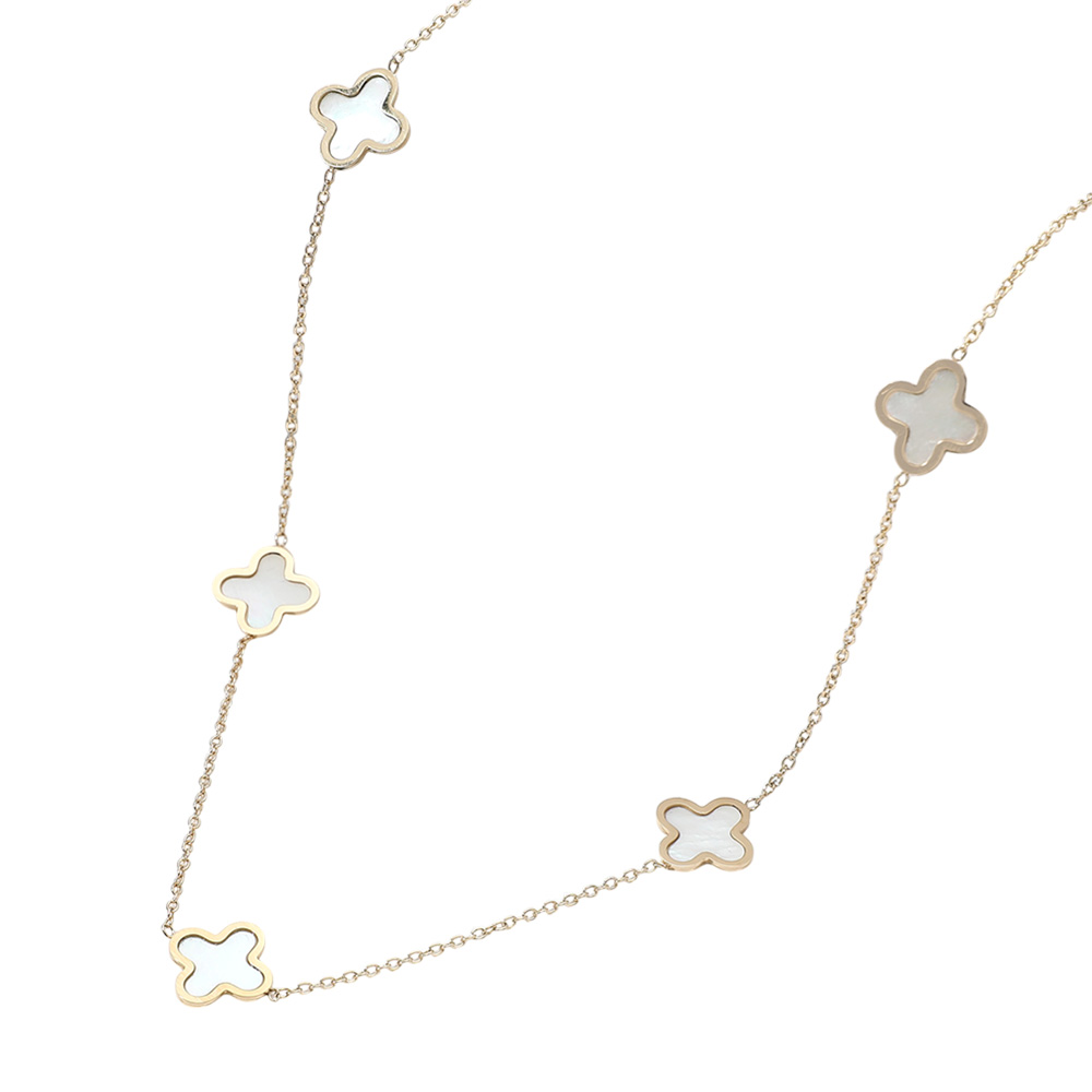 Stainless Steel Mother of Pearl Quatrefoil Charm Station Necklace